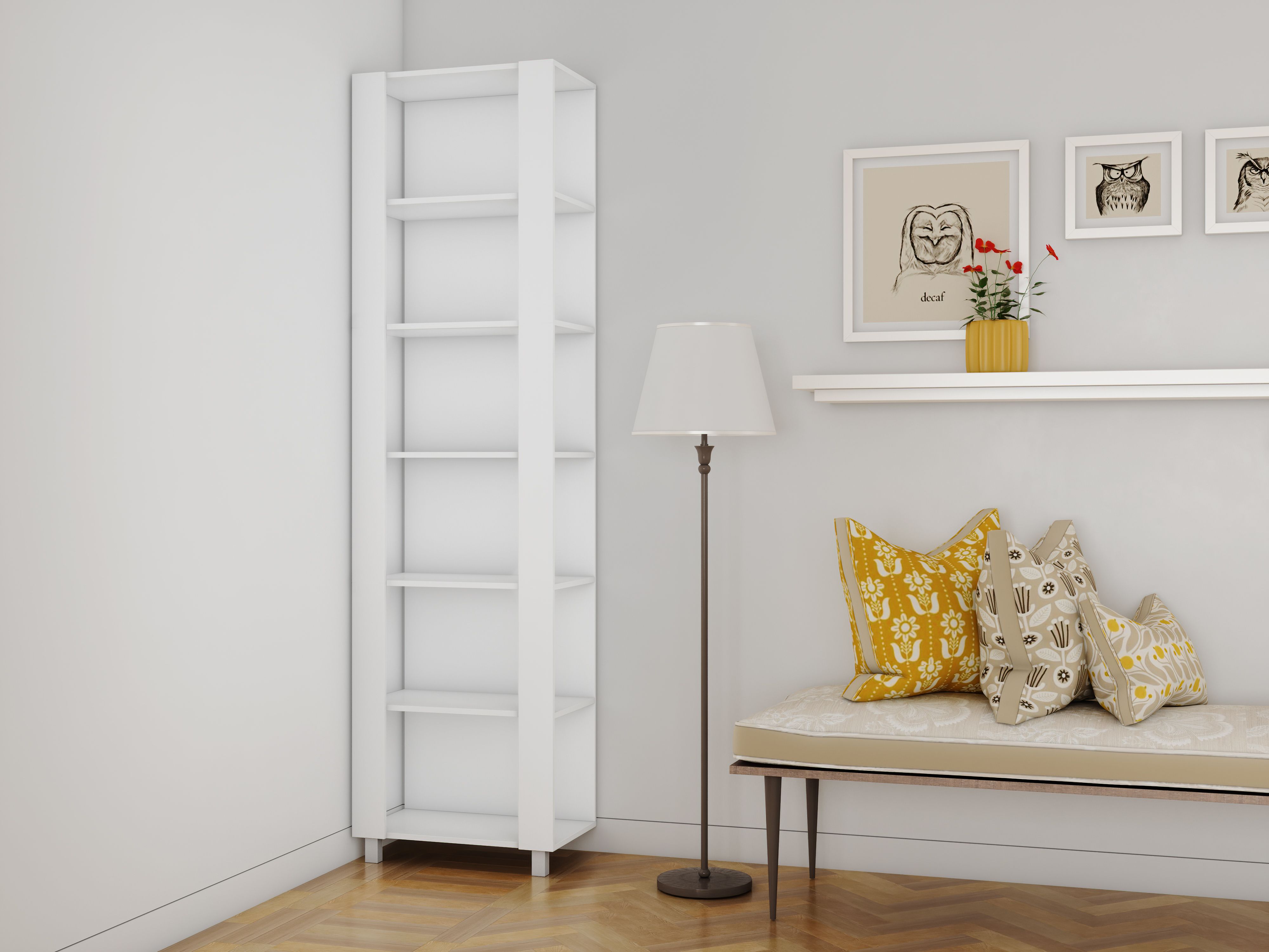 Деревянные стеллажи белого цвета в гостиную