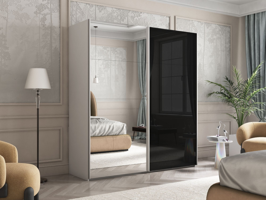 Шкаф Эста дуо Стекло черное/зеркало 2400 х 2000 х 660 Код I0000391826