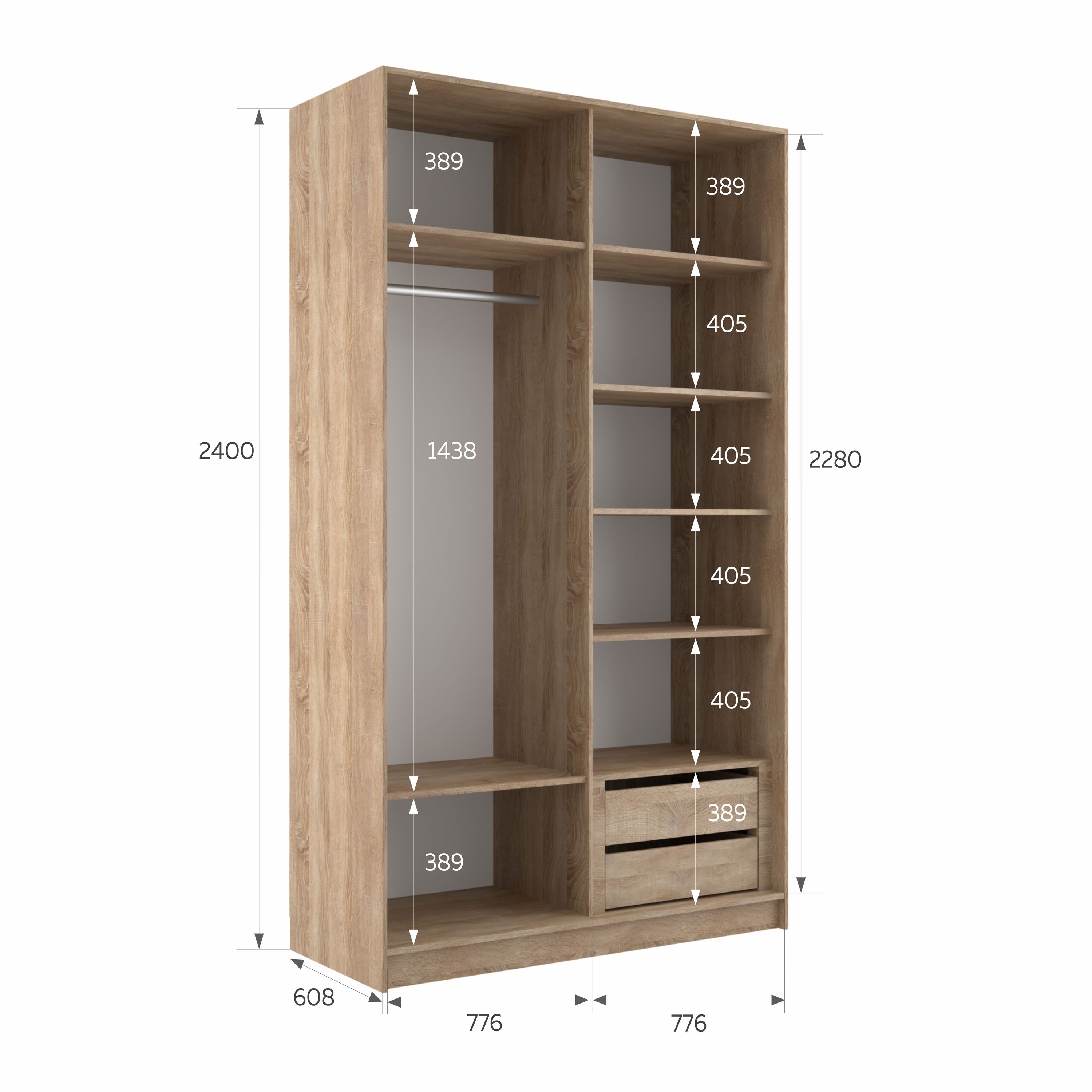 Отзывы о Столплит Шкаф-купе Эста Зеркало+Зеркало 160х66х240 Дуб Бардолино