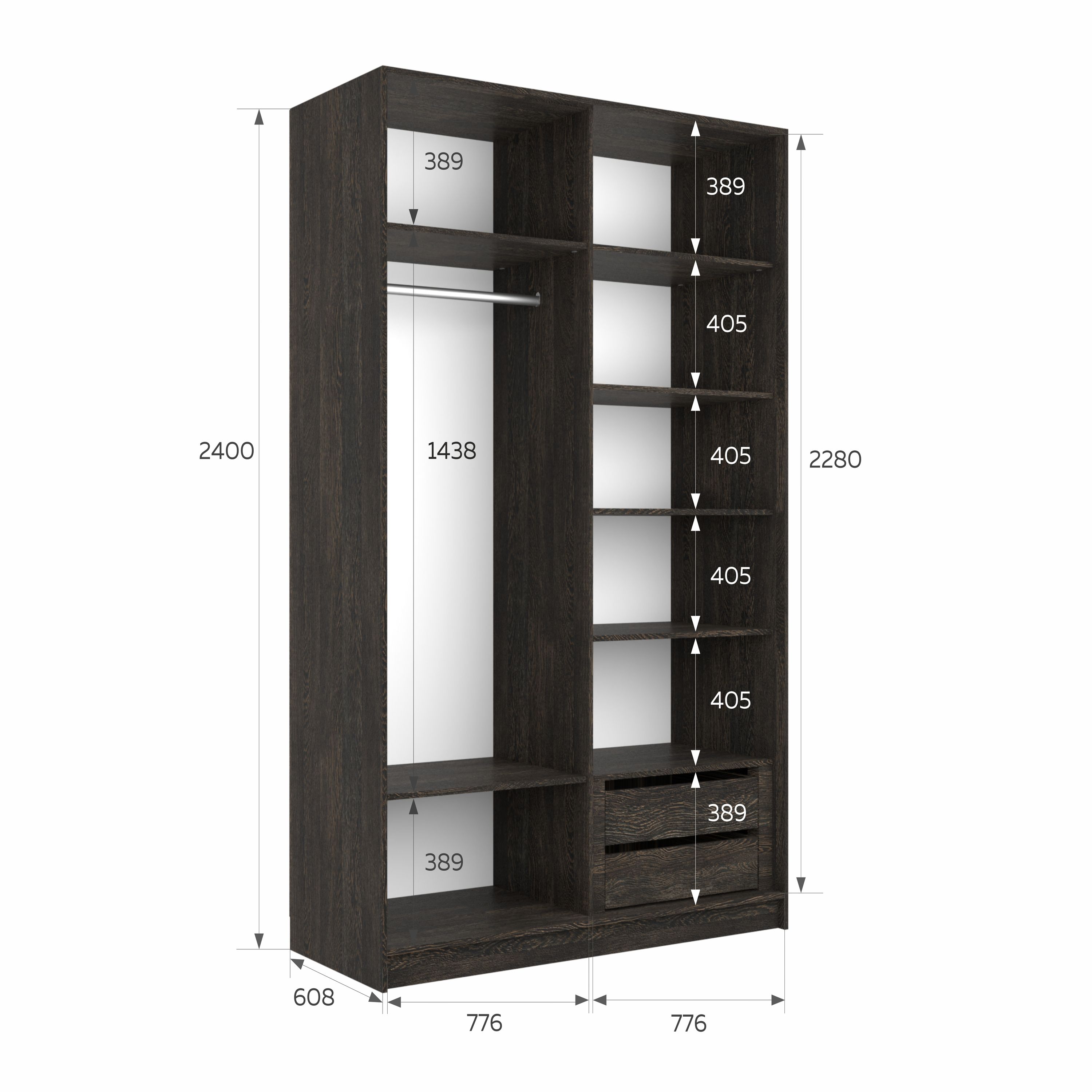 Отзывы о Столплит Шкаф-купе Эста Зеркало+Зеркало 160х66х240 Венге мали
