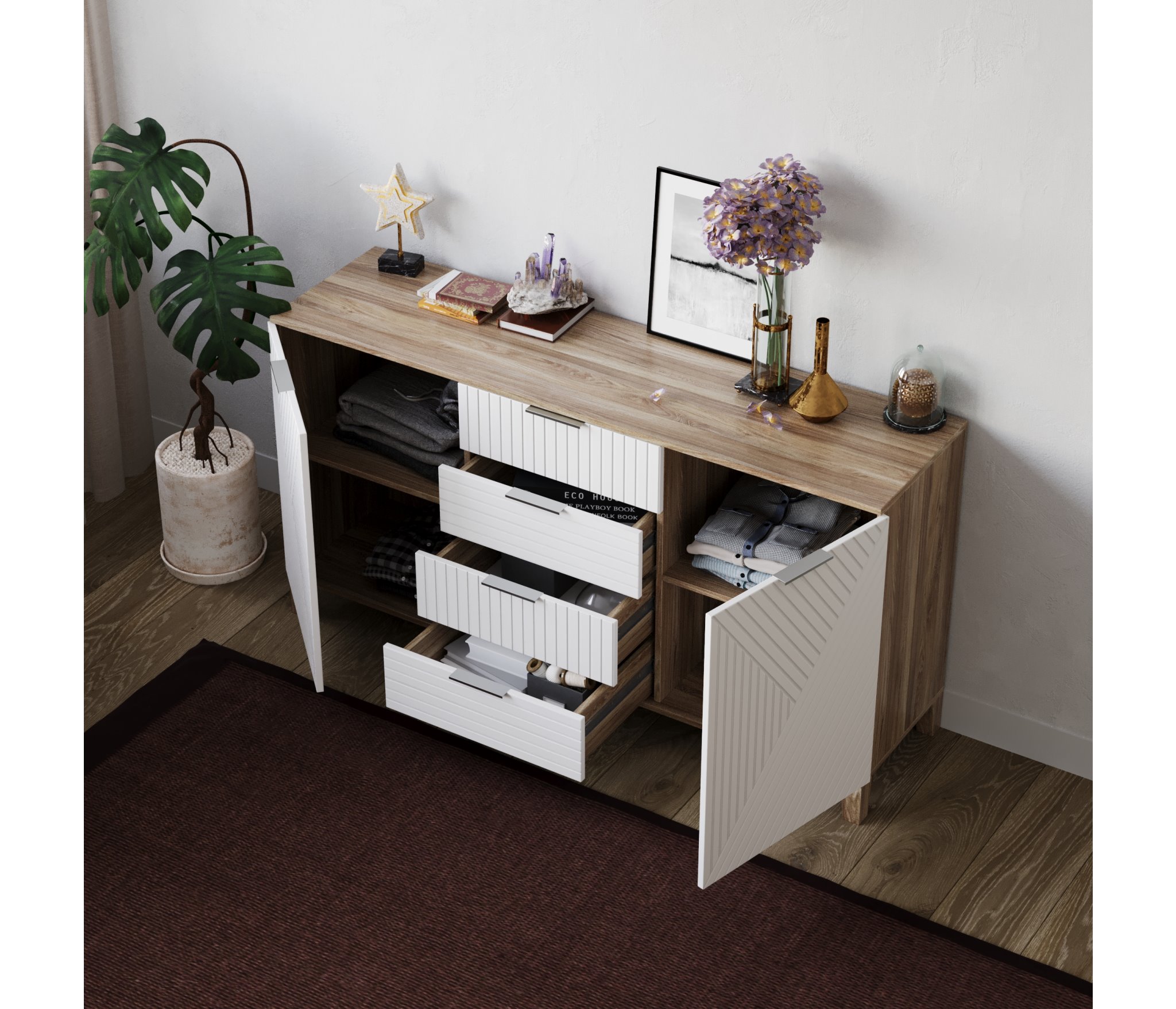 Качествееные материалы и отличная фурнитура дадут гарантию долговечности.Данная мебель является не только прекрасным модулем для хранения различных вещей, но и станет украшением вашего интерьера.