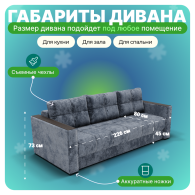 Передача готового товара Покупателю или транспортной компании осуществляется только при условии его полной оплаты. Доставку товара организовывает продавец, стоимость доставки входит в стоимость дивана.