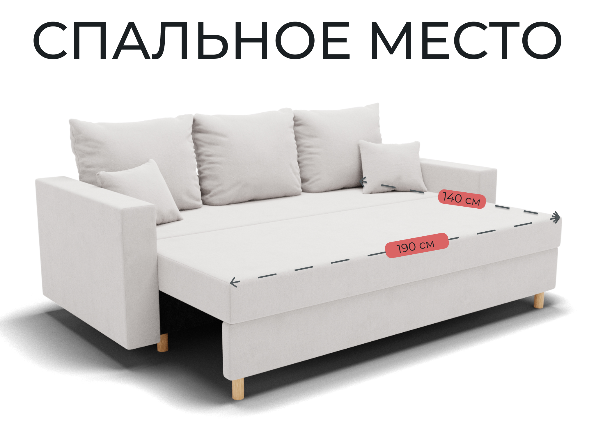 - Длина спального места: 190 см;