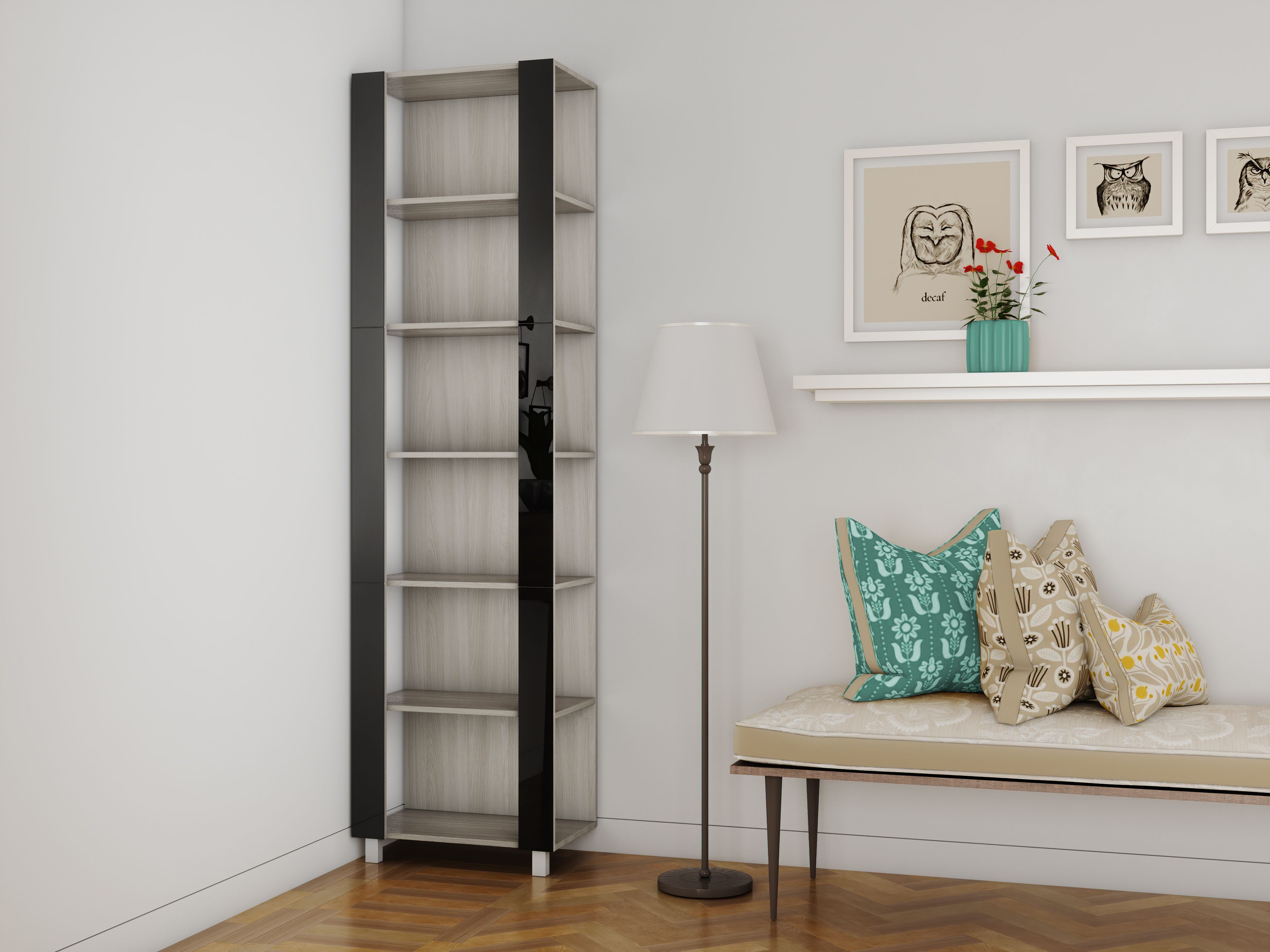Отзывы о Столплит Стеллаж модульный Универсальный 35х44х220 Черное стекло Ясень шимо светлый