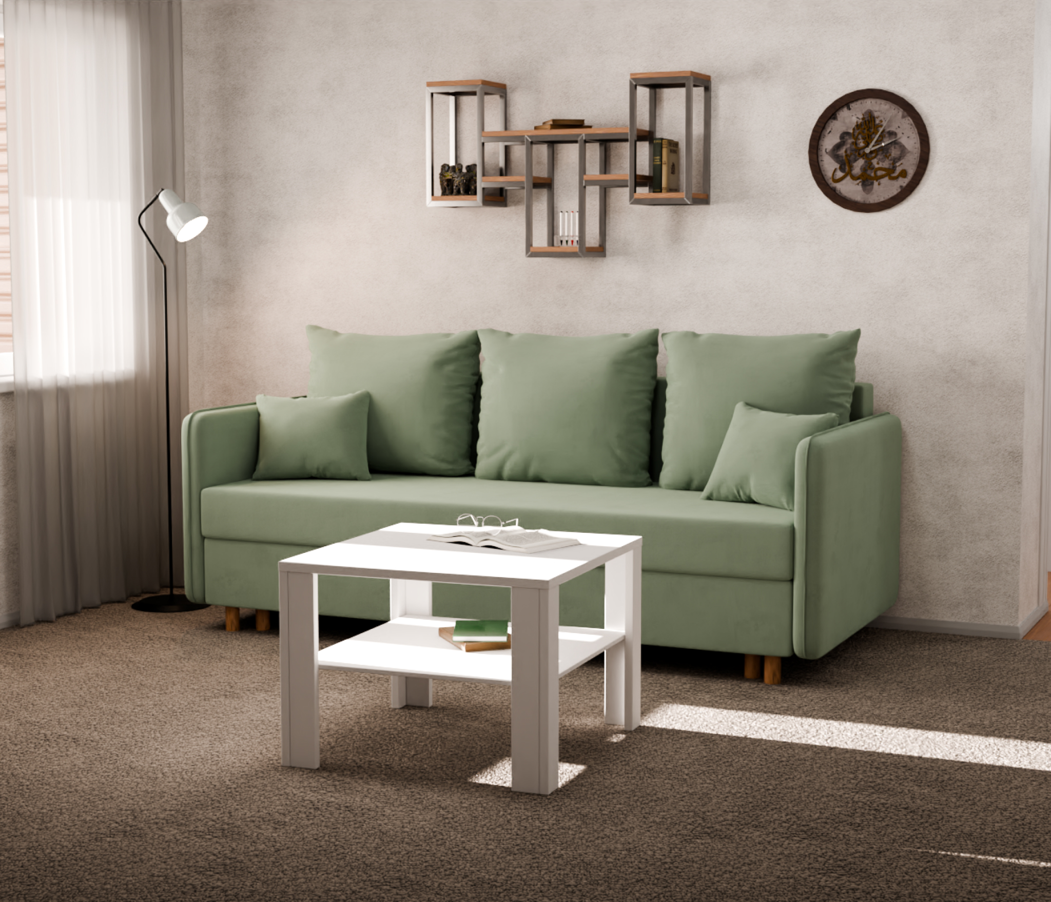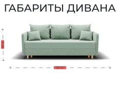 Диван-кровать оснащен механизмом трансформации "еврокнижка" и ящиком для хранения белья. Обивка выполнена из мягкого и приятного на ощупь велюра. Цвет дивана "фисташковый", что делает его универсальным и гармоничным для многих интерьеров.