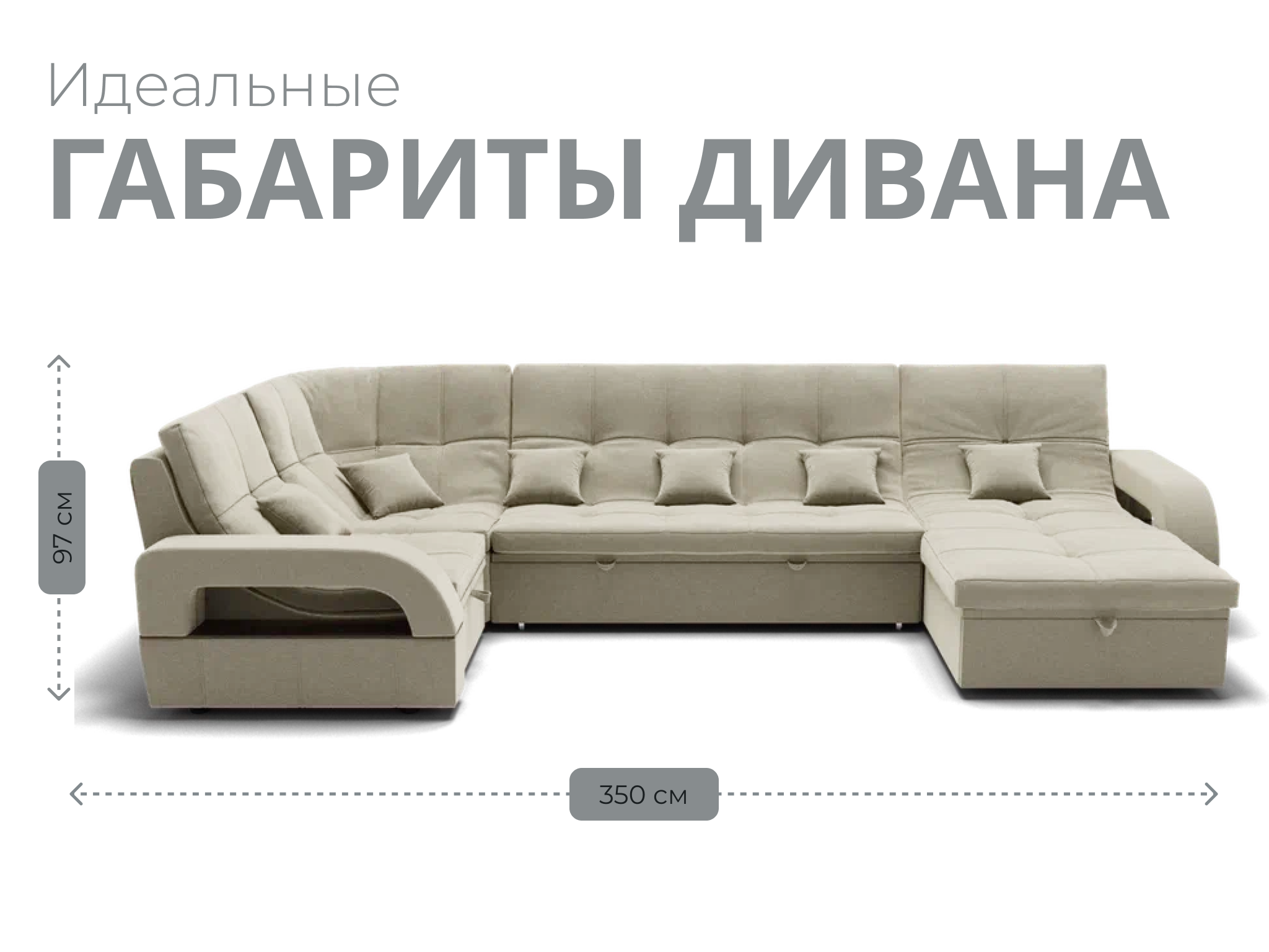 Он имеет высоту 97 см, ширину 350 см и глубину 187 см. Обит велюром - Veluta lux. Диван обладает универсальным расположением угла, что позволяет его использовать в любом помещении.