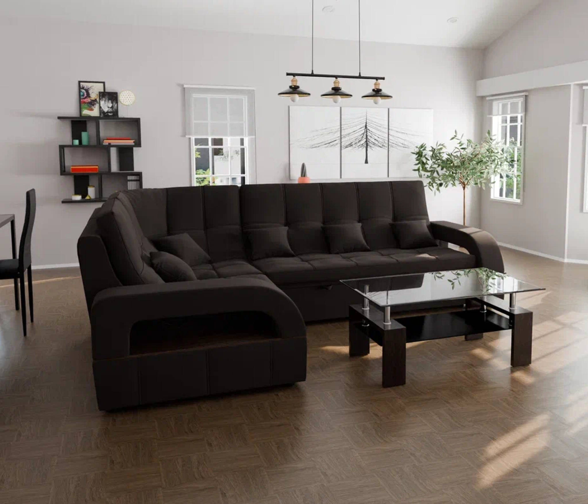 Он имеет высоту 97 см, ширину 187 см и глубину 268 см. Диван обладает универсальным расположением угла, что позволяет его использовать в любом помещении.