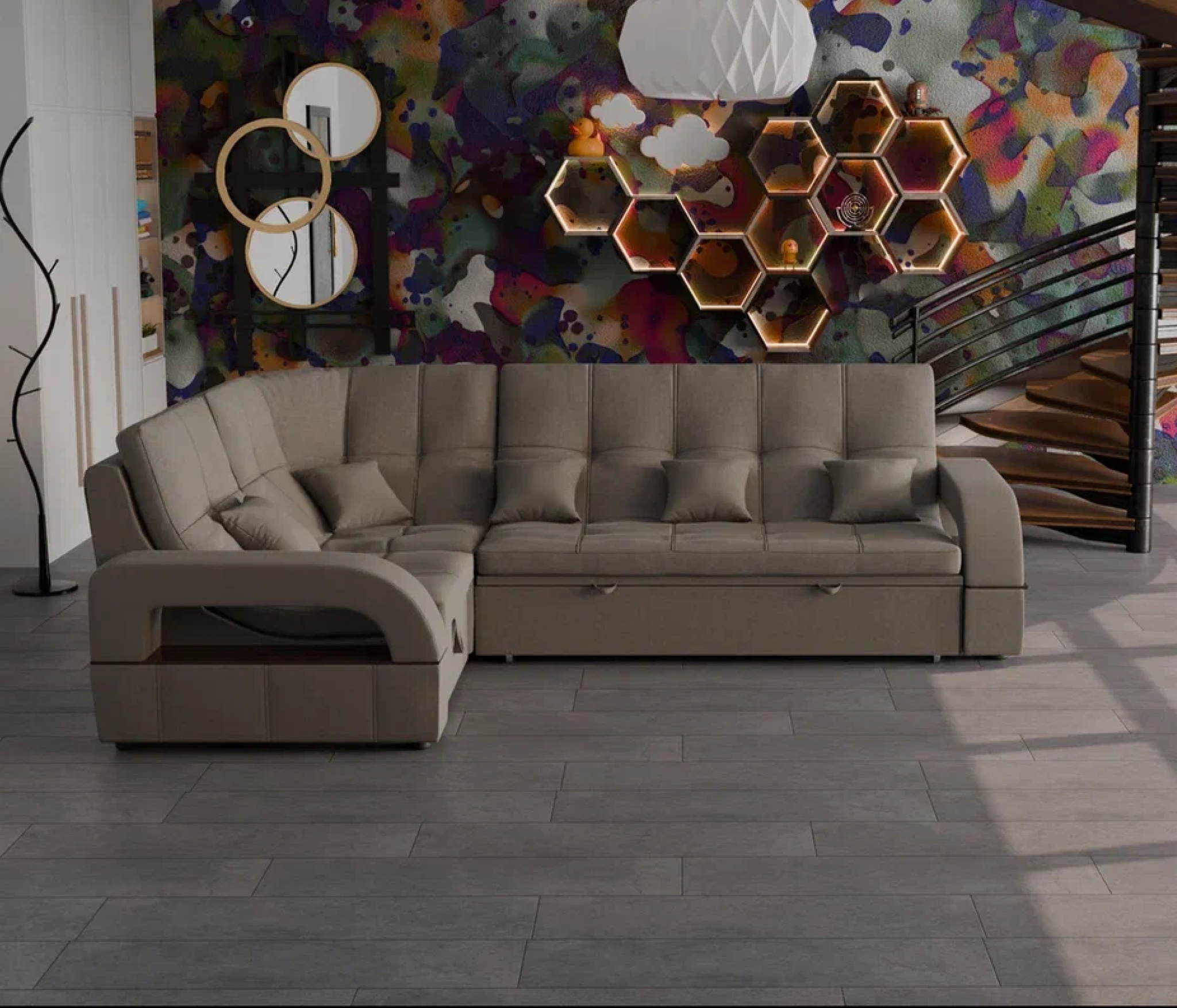 Отзывы о Столплит Модульный диван Майами-3,микровелюр,антивандальная и водостойкая ткань,венеция Серый 251