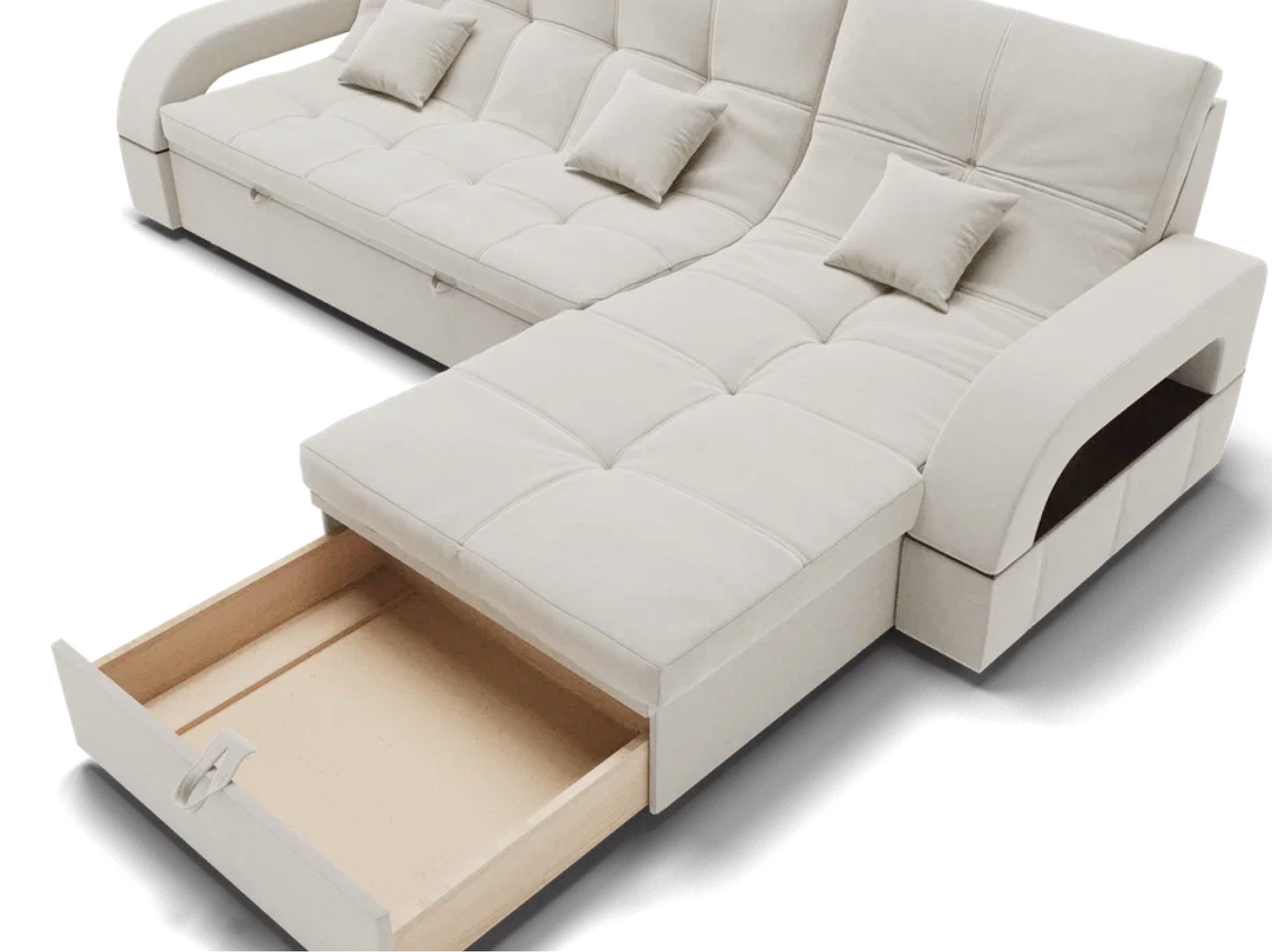 Модульный диван "Майами-2" от YORCOM - это отличный выбор для тех, кто ищет комфортабельный и стильный диван для своего дома. Этот диван выполнен из велюра белого цвета, который придает ему элегантный и современный вид.
