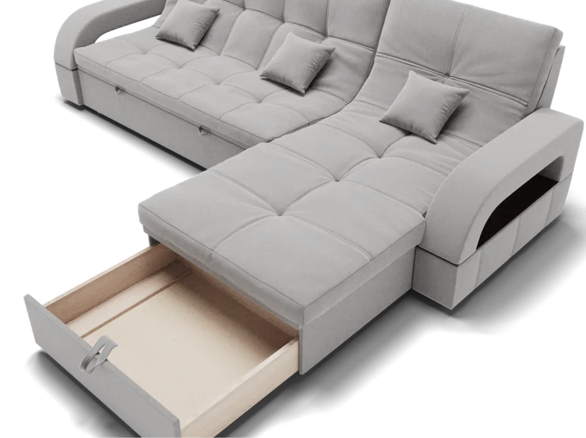 Модульный диван "Майами-2" от YORCOM - это отличный выбор для тех, кто ищет комфортабельный и стильный диван для своего дома. Этот диван выполнен из велюра белого цвета, который придает ему элегантный и современный вид.