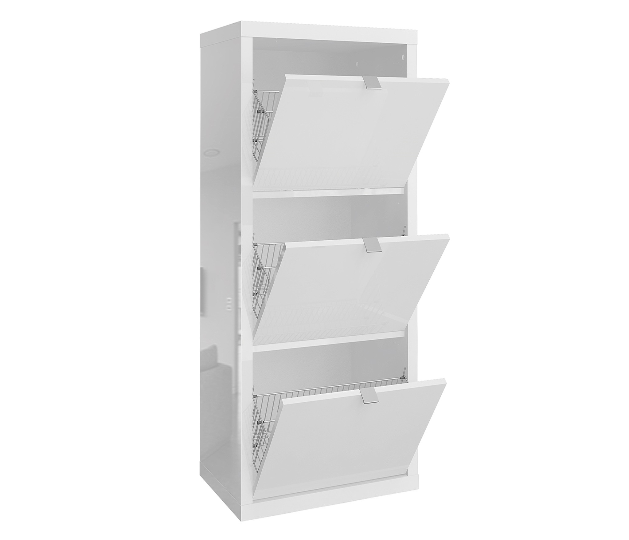 Фасады изготовлены из 16 мм ламинированной древесностружечной плиты производства компании «ЭГГЕР» - цвет «Белый». На лицевые поверхности корпуса нанесено высокоглянцевое лаковое покрытие. По периметру фасады закромлены кромкой ABS.