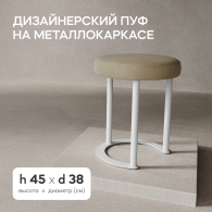 3. Дизайн: Элегантный и современный дизайн круглого пуфика с изящным металлическим каркасом станет идеальным дополнением к любому интерьеру. Главная изюминка в исполнении – подставка для ножек в форме подковы, благодаря которой пуфик смотрится акцентно в интерьере Вашего дома.