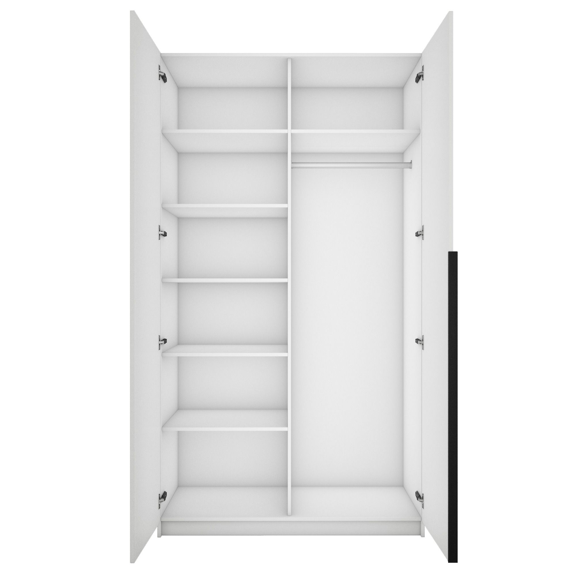 Благодаря надежным полкодержателям - штифтам, полки шкафа могут выдерживать до 15 кг, штанга выдерживает нагрузку до 60 кг. Вы сможете убрать сезонные вещи, постельное белье на верхние полки. Распашной шкаф оснащен долговечной, ударостойкой кромкой ПВХ, которая защищает его торцы от сколов и повреждений, что обеспечит вам комфортное и долгое использование гардероба. Распашная система дверей Titus B-Type обеспечивает надежное прилегание дверцы к корпусу шкафа и высокую износостойкость. Механизм не деформируется при значительных нагрузках и максимально практичен в эксплуатации. Шкаф оснащен удобной минималистичной ручкой, изготовленной из алюминия. В производстве используется безопасное ЛДСП международного класса Е1, что способствует безопасному использованию на протяжении всего срока эксплуатации.