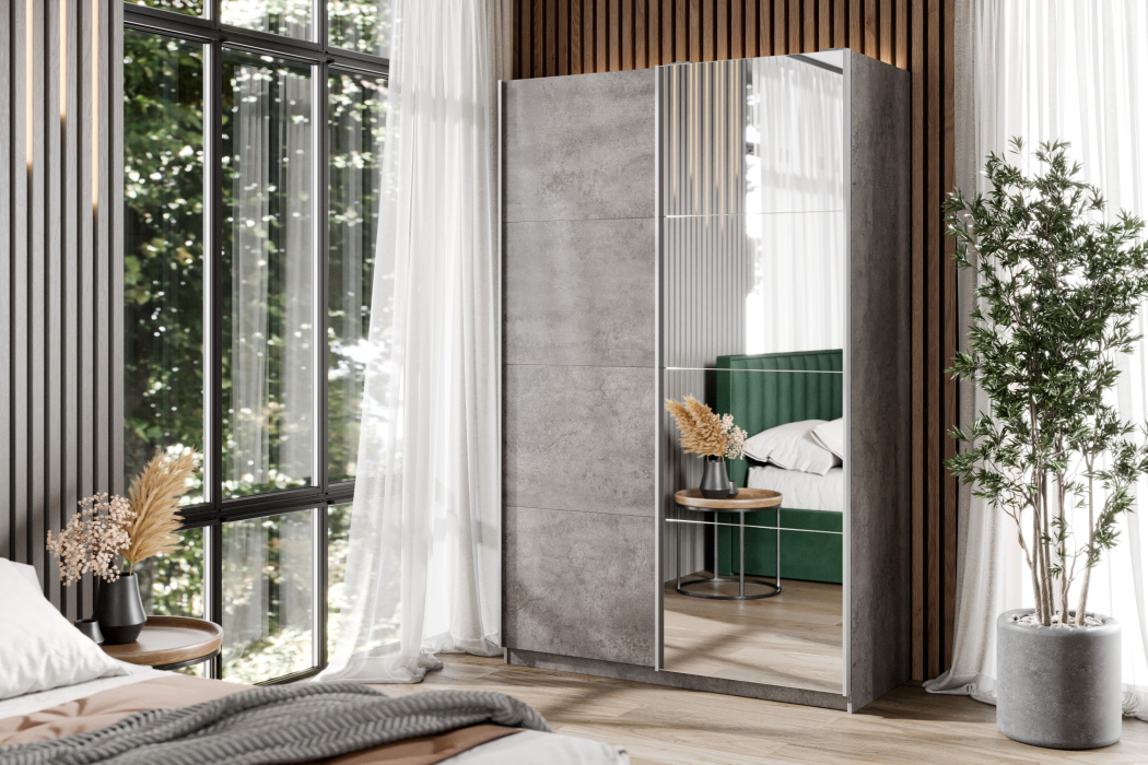 Шкаф-купе Smart 1622 2х дверный (фасады ЛДСП,зеркало) профиль серебро (Бетон)