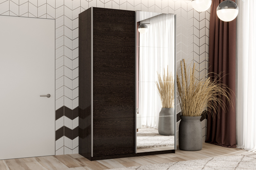 Отзывы о Столплит Шкаф-купе Smart 1622 2х дверный (фасады ЛДСП,зеркало) профиль серебро Венге