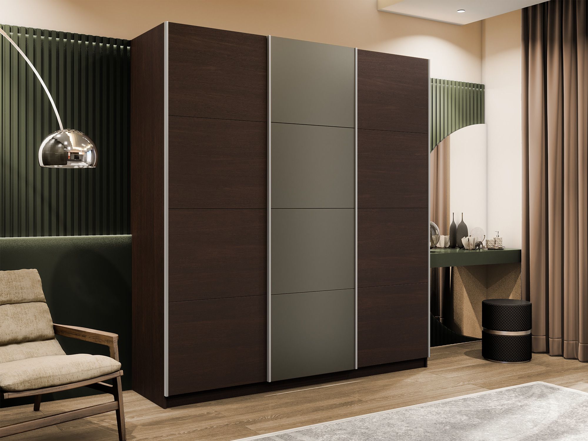 Шкаф-купе Эста 3-х дверный ДСП/Стекла хаки/Доводчик 270х66х240 (Венге мали) Код I0000408700