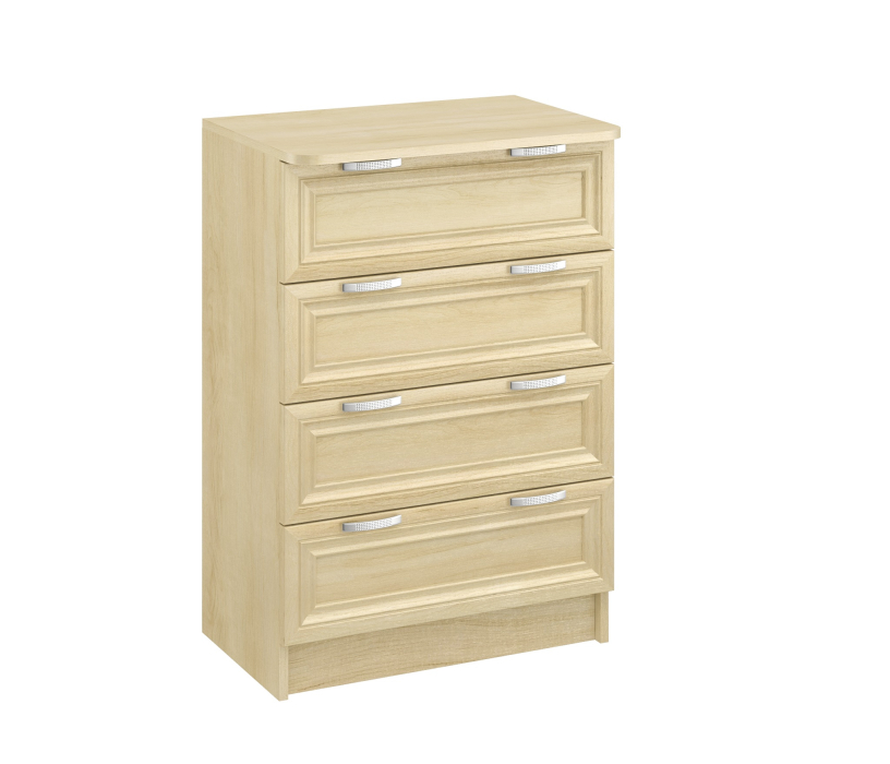 Комод ВС 600благодаря не большой ширине 62 см,удачно разместится даже в маленьком помещении.Тем не менее,4 выдвижных ящика,позволяют разместить множество вещей.Корпус ЛДСП,фасады рамочные МДФ.
