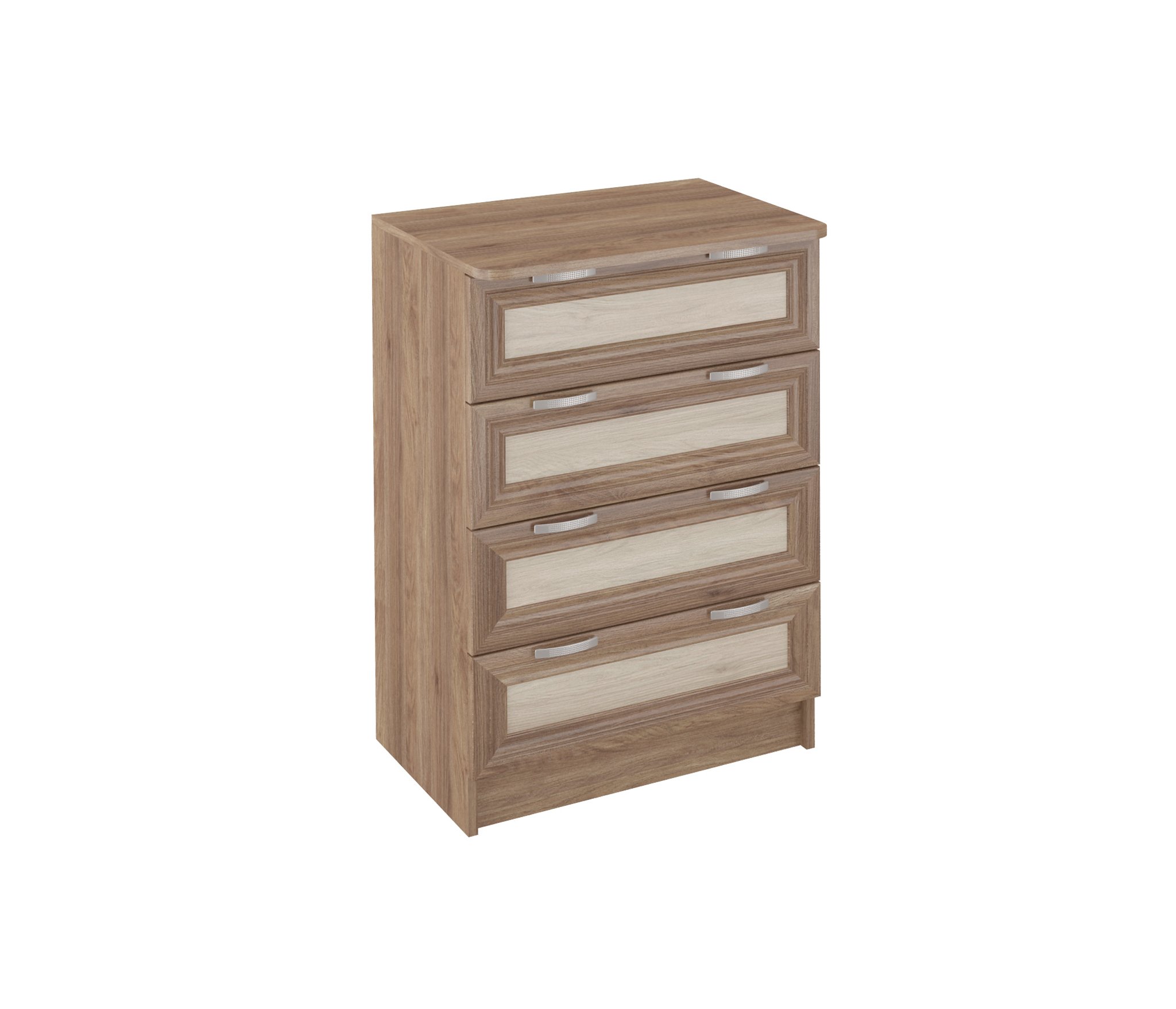 Комод ВС 600благодаря не большой ширине 62 см,удачно разместится даже в маленьком помещении.Тем не менее,4 выдвижных ящика,позволяют разместить множество вещей.Корпус ЛДСП,фасады рамочные МДФ.