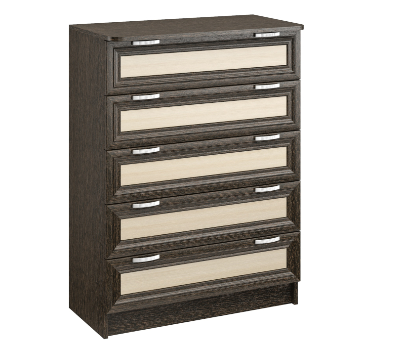 Комод ВС 5 удобен в использовании благодаря размерам.Оснащён 5-ю одинаковыми по размеру выдвижными ящиками.Позволяет разместить множество вещей.Корпус ЛДСП,фасады рамочные МДФ.Производитель оставляет за собой право менять фурнитуру.