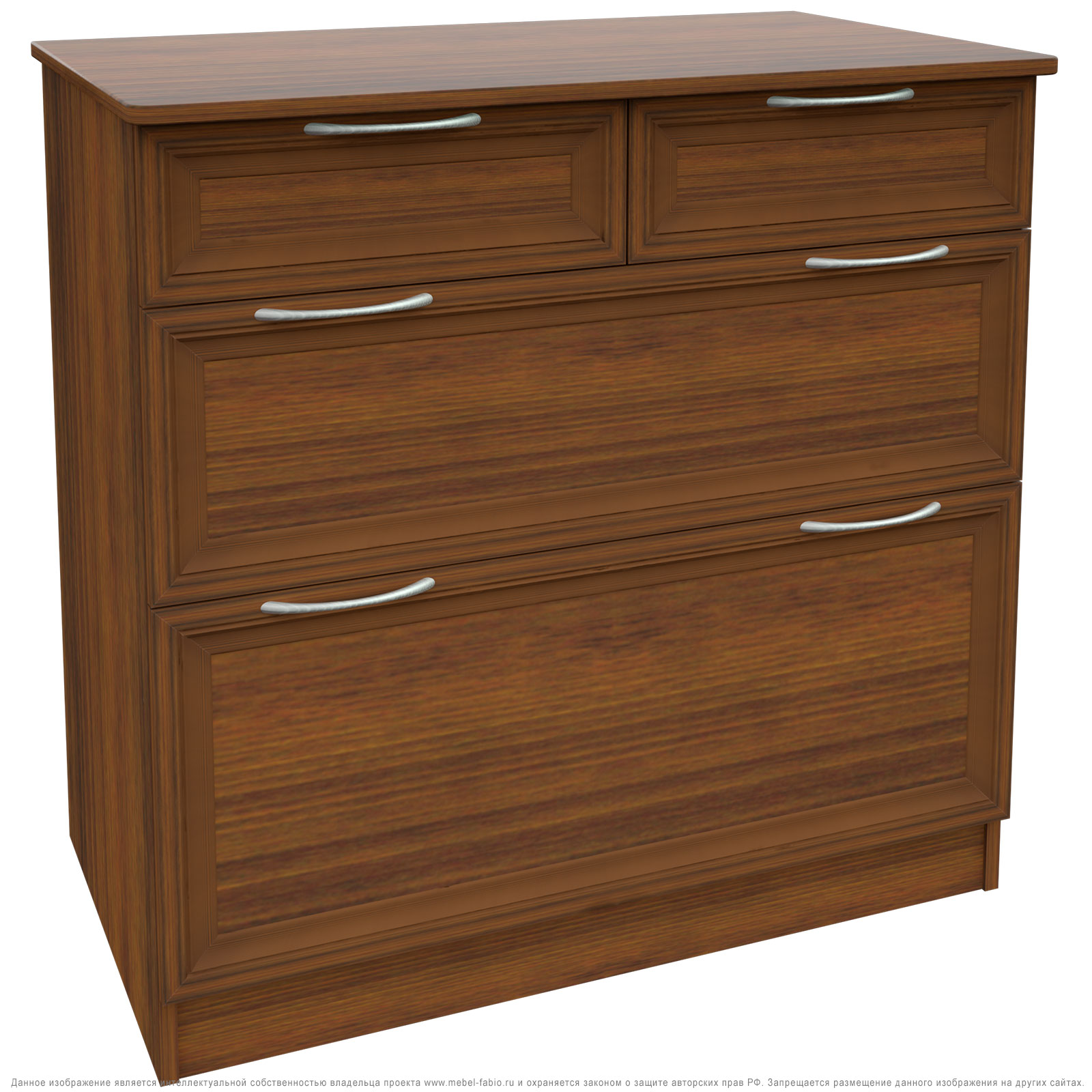 Комод 10 разработан для размещения в нём вещей разной габаритности.Для этого он оснащён 2-мя маленькими выдвижными ящиками.Далее по возврастанию,нижний ящик больше предидущего.Корпус ЛДСП,фасады рамочные МДФ.Производитель оставляет за собой право менять фурнитуру
