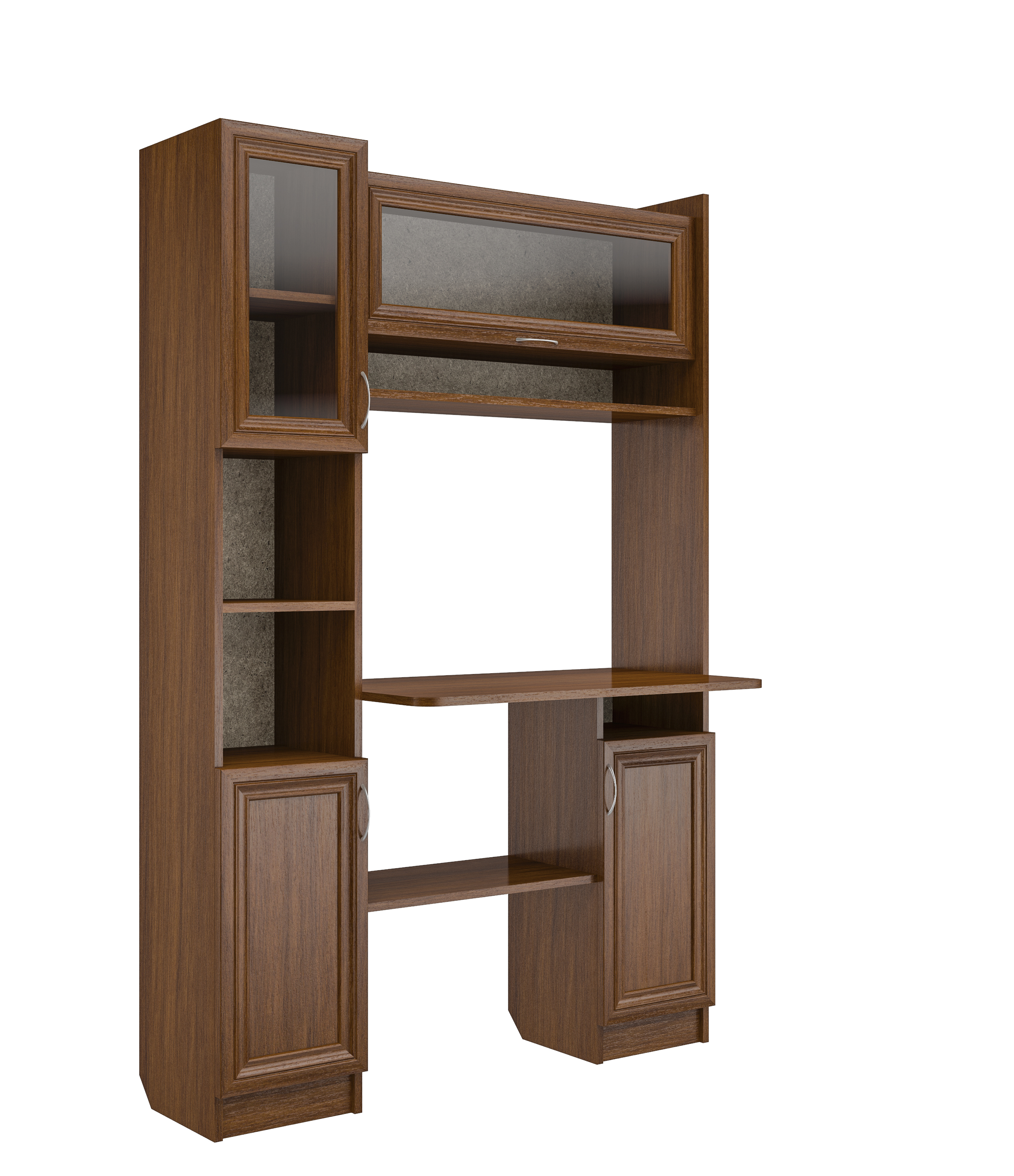 Уголок школьника №2 разработан как для школьников,так и для врослых пользователей. Отличается компактными размерами1700*1150*500 и функциональностью,что позволяет разместить его,даже в небольшом помещении.Корпус Выполнен из ЛДСП, с рамочными фасадами плёнка МДФ+стекло.