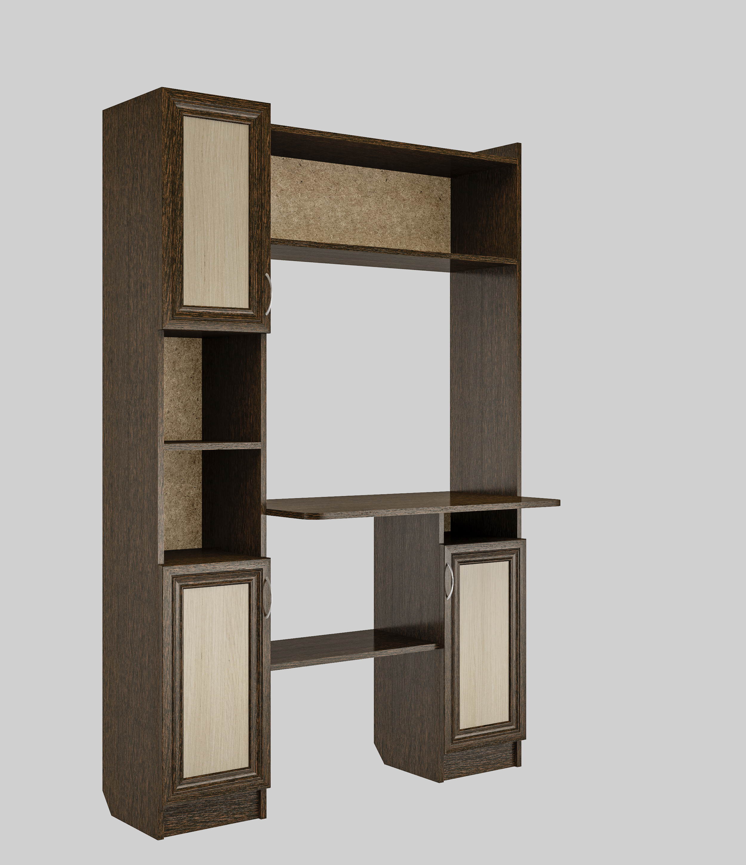 Уголок школьника №1 разработан как для школьников,так и для врослых пользователей.Отличается компактными размерами1700*1150*500 и функциональностью,что позволяет разместить его,даже в небольшом помещении.Корпус Выполнен из ЛДСП, с рамочными фасадами плёнка МДФ.