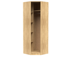 Шкаф угловой ШК-1/5 выполнен из Ламинированной ДСП высшего качества с насыщенным цветом. Фасад рамочный обработка МДФ укреплены металлическими скобами и силиконом изнутри.Дополнительно оснащён зеркалом.Шириною 80 см., данный угловой шкаф имеет слева отделение с пятью секциями разделенными полками. Справа большая секция для одежды со штангой и верхняя полка над ней.При необходимости можно поставить сверху еще и антресоль ШК-1/3 ,что увеличит высоту шкафа еще на 40 см.
