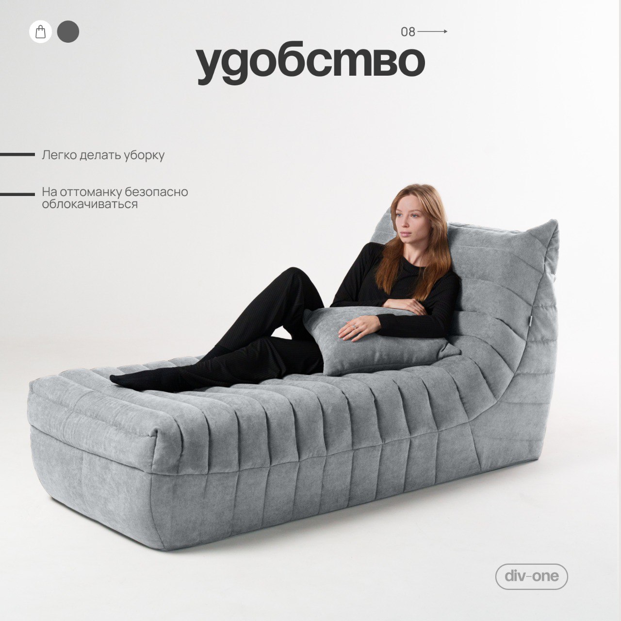 Бескаркасный диван Говард с оттоманкой — это универсальный предмет мебели, который подойдет для любой комнаты. Он отлично впишется в интерьер спальни, гостиной, детской или даже кухни.