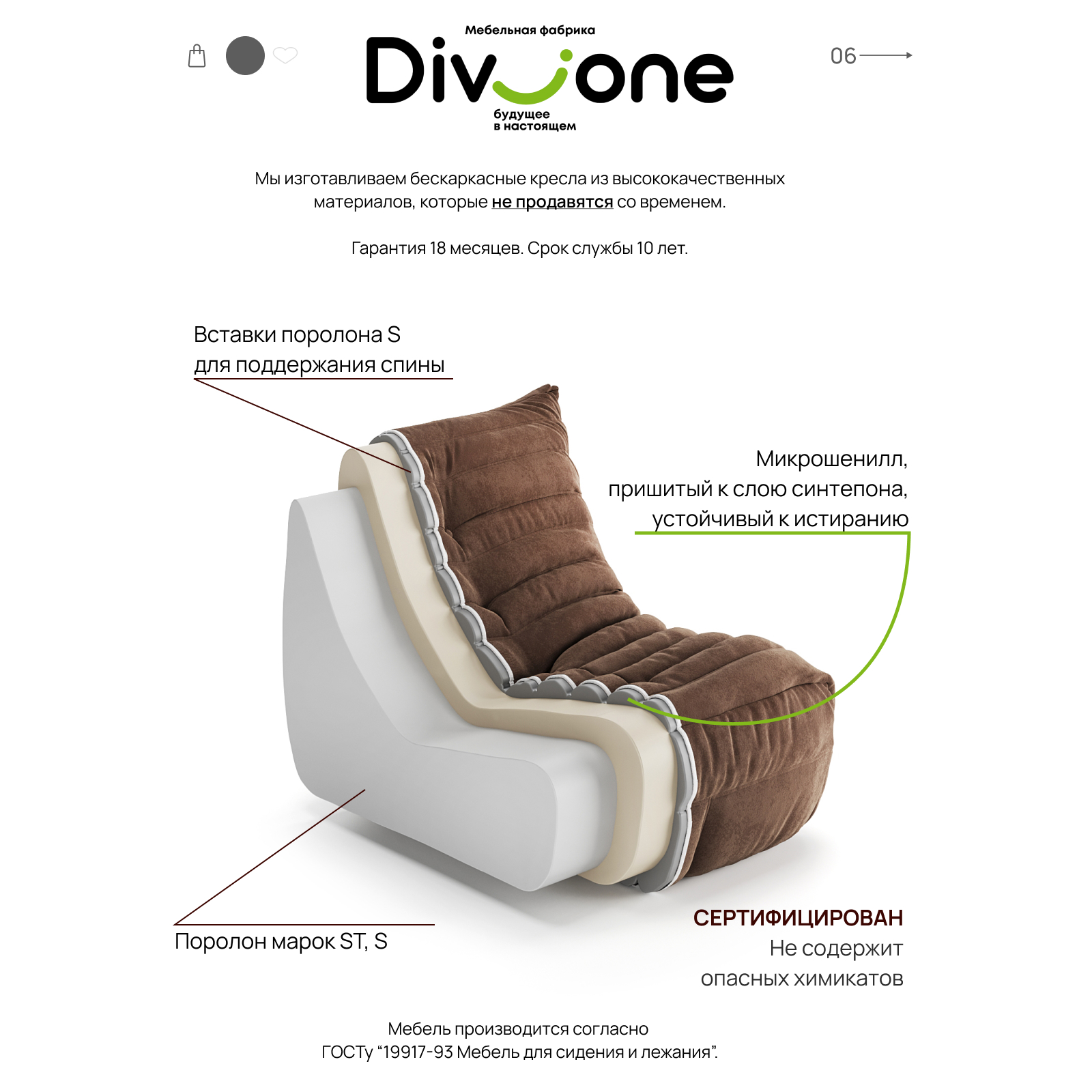 Мягкая обивка обеспечивает комфорт и удобство во время отдыха. Она выполнена из высококачественного Микрошенилла, который не только приятен на ощупь, но и легко чистится. Модуль имеет ортопедическую форму, которая поддерживает спину и обеспечивает комфорт во время отдыха.
