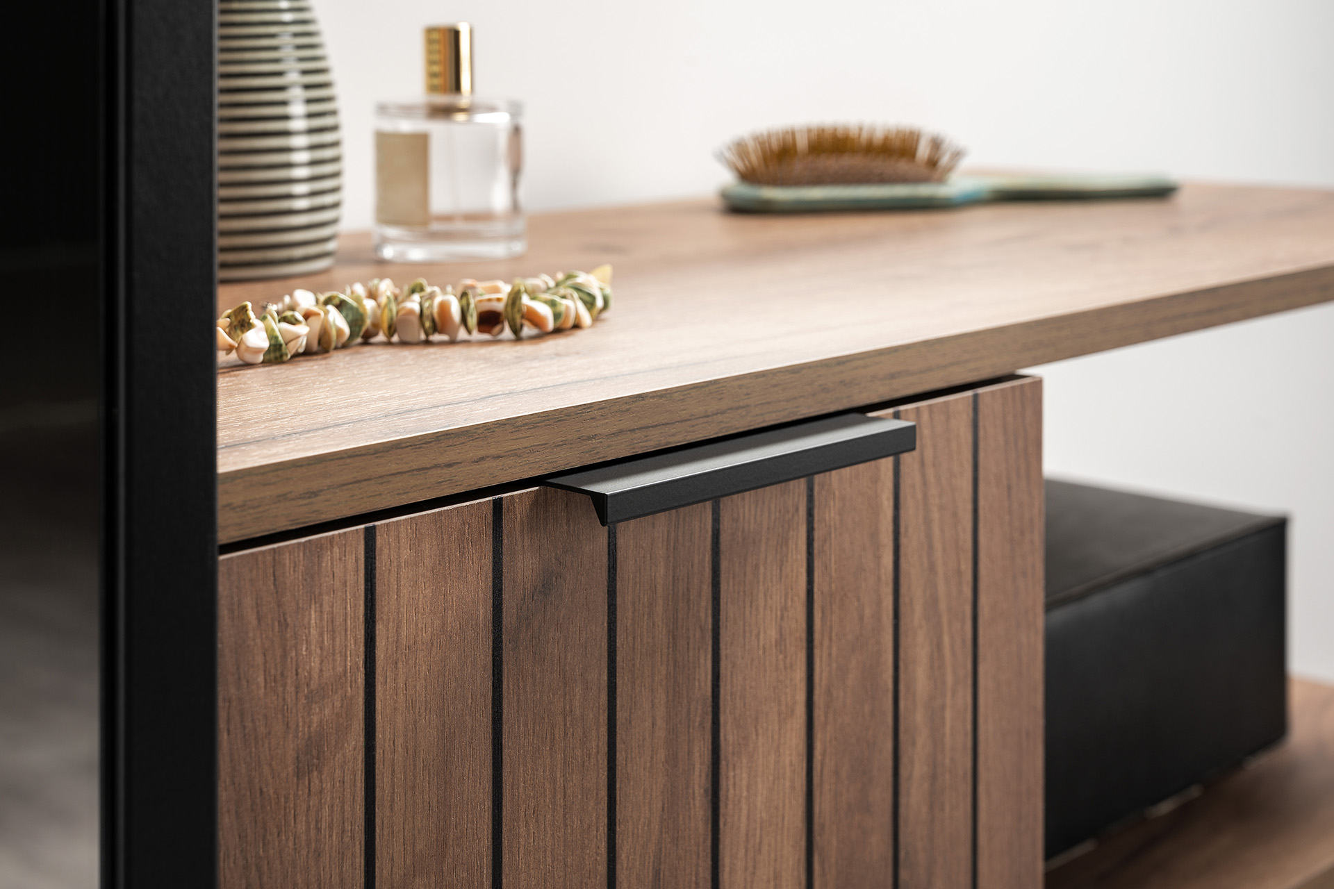 Металлические стойки, открытые полки и вертикальные линии на фасадах создают ощущение легкости и воздуха.
