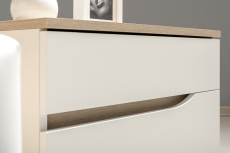 Тумба имеет 2 выдвижных ящика, ручки вырезы.