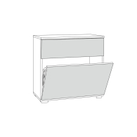 Аккуратная обувница с выдвижным ящиком для мелочей сверху и нишей с откидной дверкой с полками для обуви снизу. Отделение с откидной дверкой с полками вмещает до 6 пар невысокой обуви. Шариковые направляющие полного выдвижения обеспечивают тихую эксплуатацию выдвижного ящика. Металлические ручки выполнены из алюминиевого профиля надежно крепятся и удобно ложатся в руку. Визуально может показаться, что мебель без ручек. Такая видимость создается из-за того, что профиль крепится к торцовой части дверей и ящика. Тумба для обуви оснащена пластиковыми опорами серого цвета.