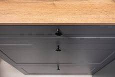 Цветовое решение – серый графит с теплым древесным декором.