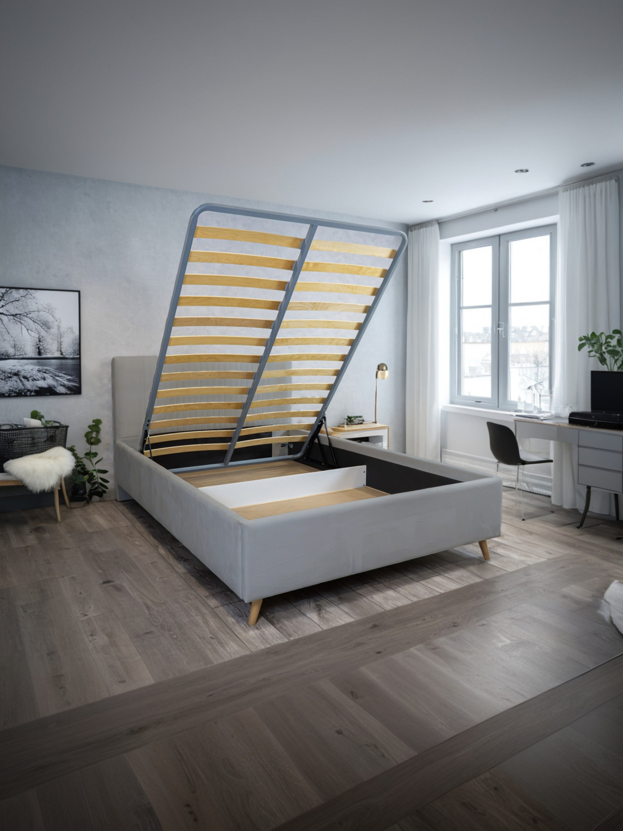- Скошенные под углом ножки из натурального дерева высотой 130 мм.;