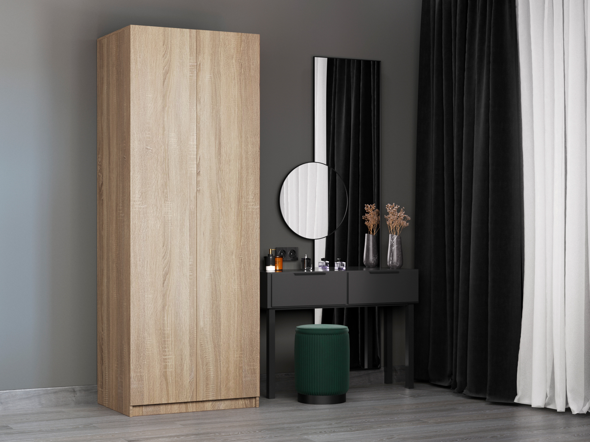 Шкаф складной Е1 Локер ("Гармошка" с системой Push to Move/Правый)81х52.5х220 см, с модулем (Дуб сонома)
