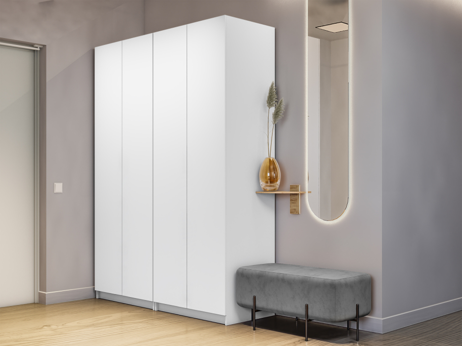 Шкаф складной Е1 Локер ("Гармошка" с системой Push to Move/Правый)162х52.5х220 см,с двумя комплектами полок и двумя модулями (Белый снег)