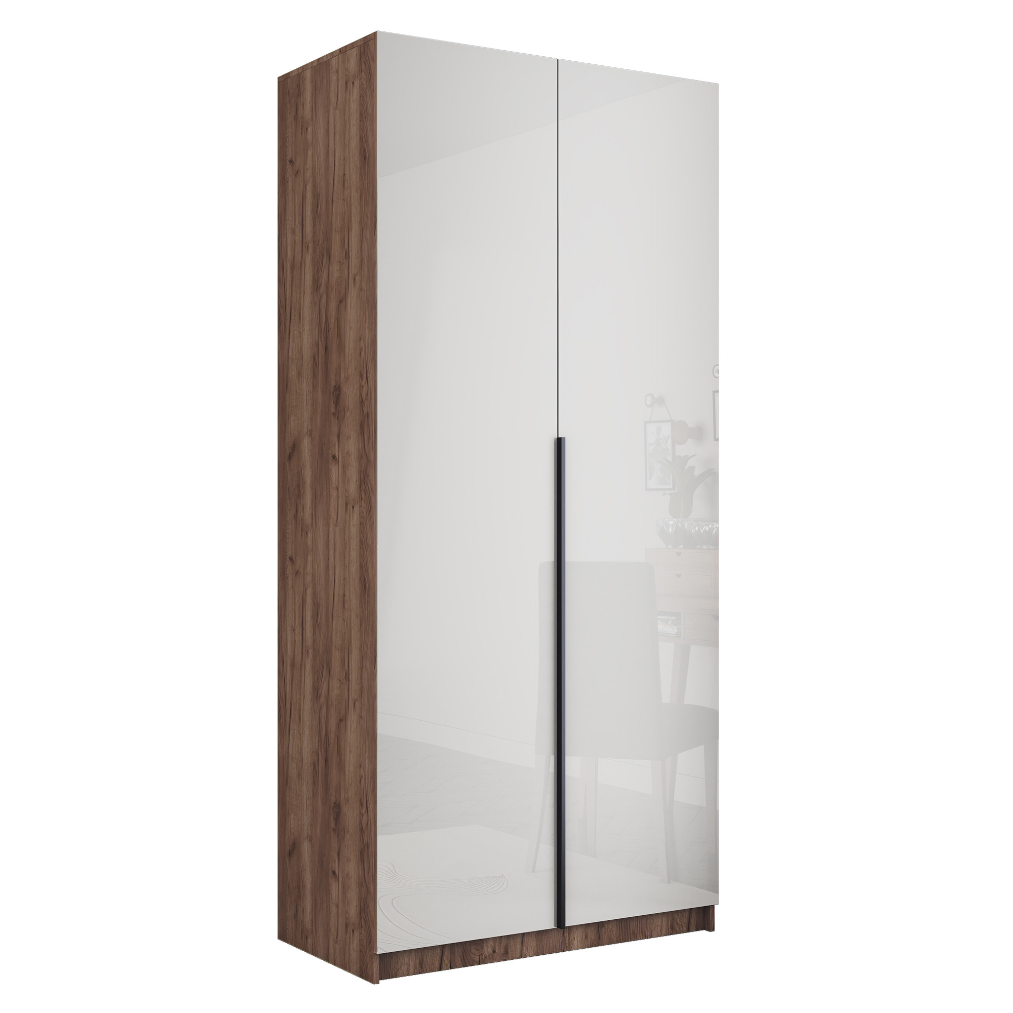 Шкаф оснащен удобной минималистичной ручкой, изготовленной из алюминия.