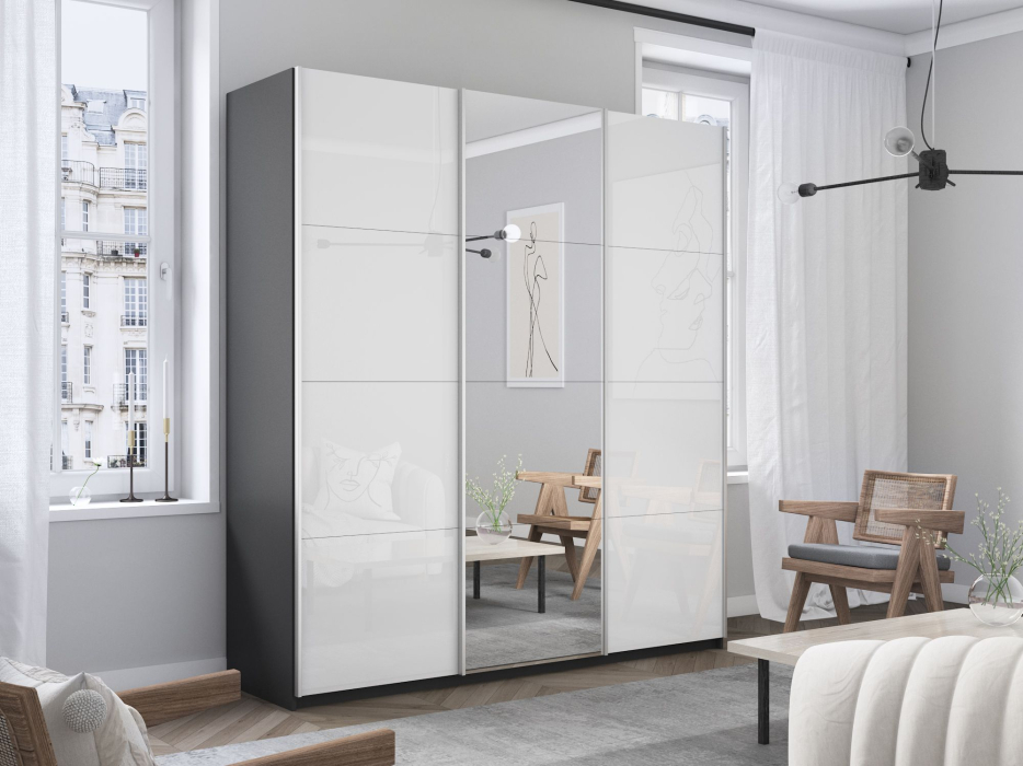 Отзывы о Столплит Шкаф-купе Прайм 3-х дверный Стекла белые/Зеркало/Доводчики 180х57х230 Серый диамант