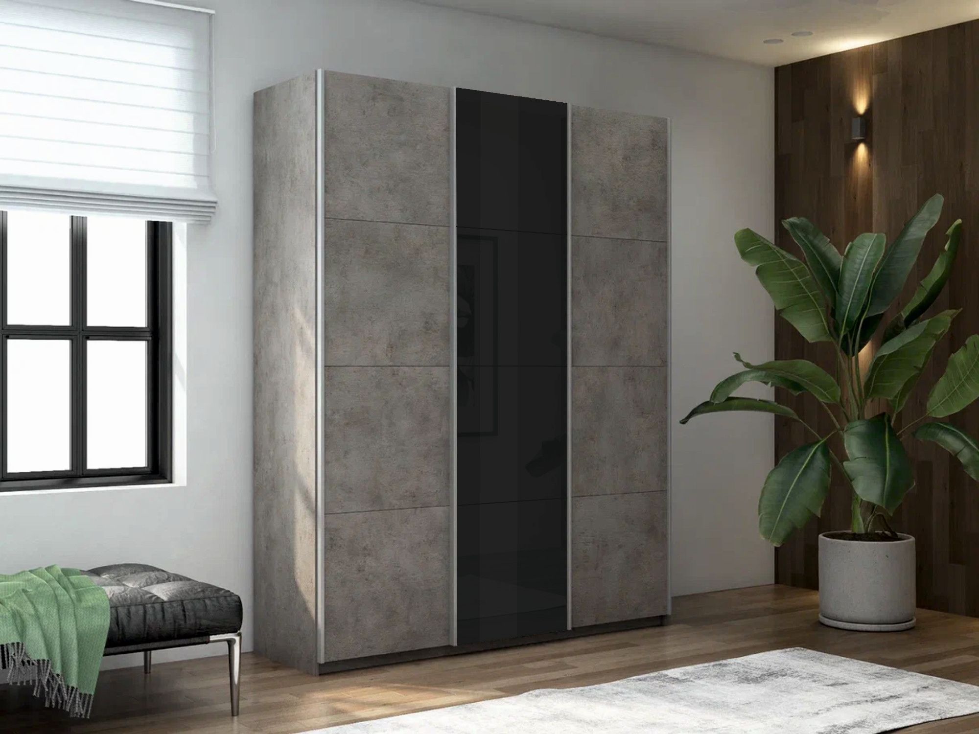 Отзывы о Столплит Шкаф-купе Прайм 3-х дверный ДСП/Стекло черное/Доводчики 180х57х230 бетон