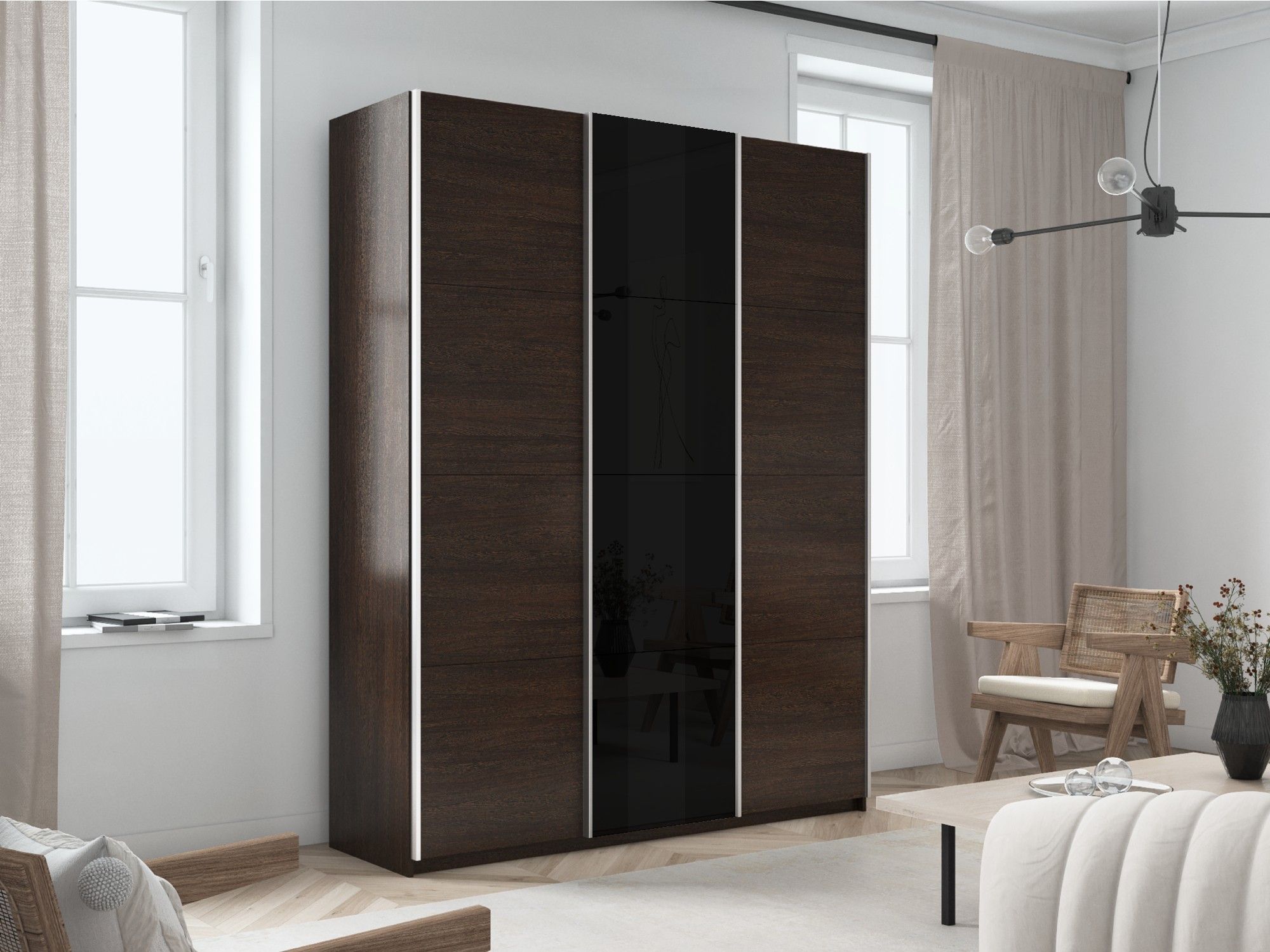 Отзывы о Столплит Шкаф-купе Прайм 3-х дверный ДСП/Стекло черное/Доводчики 210х57х230 Венге