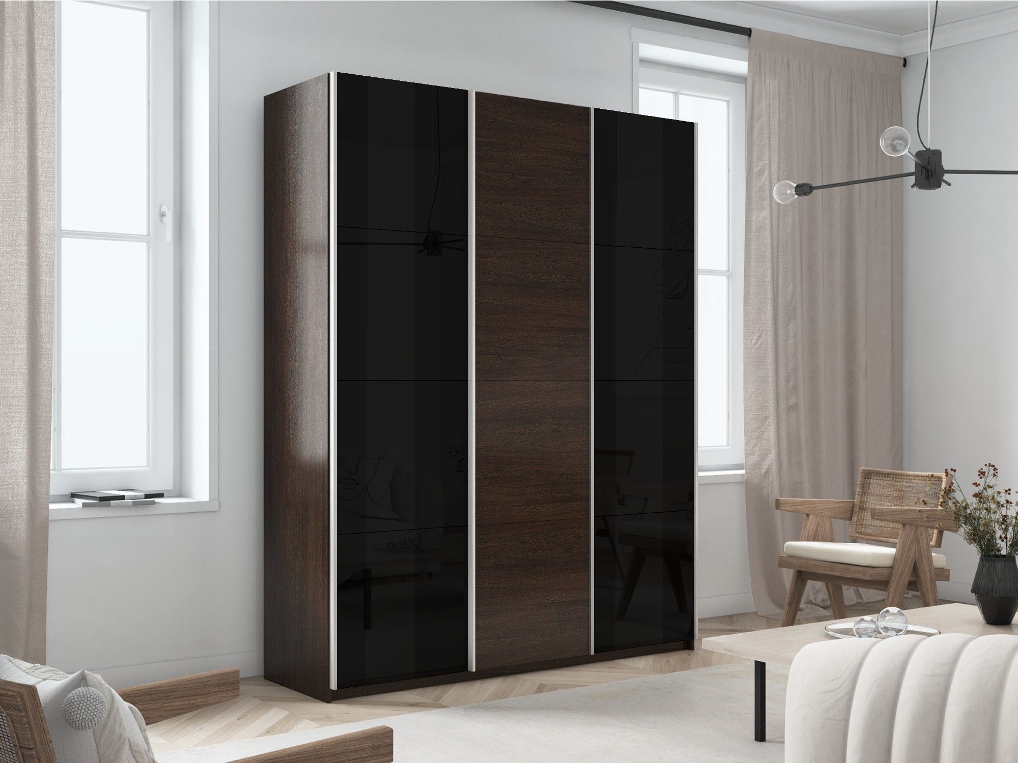 Отзывы о Столплит Шкаф-купе Прайм 3-х дверный Стекла черные/ДСП/Доводчики 180х57х230 Венге