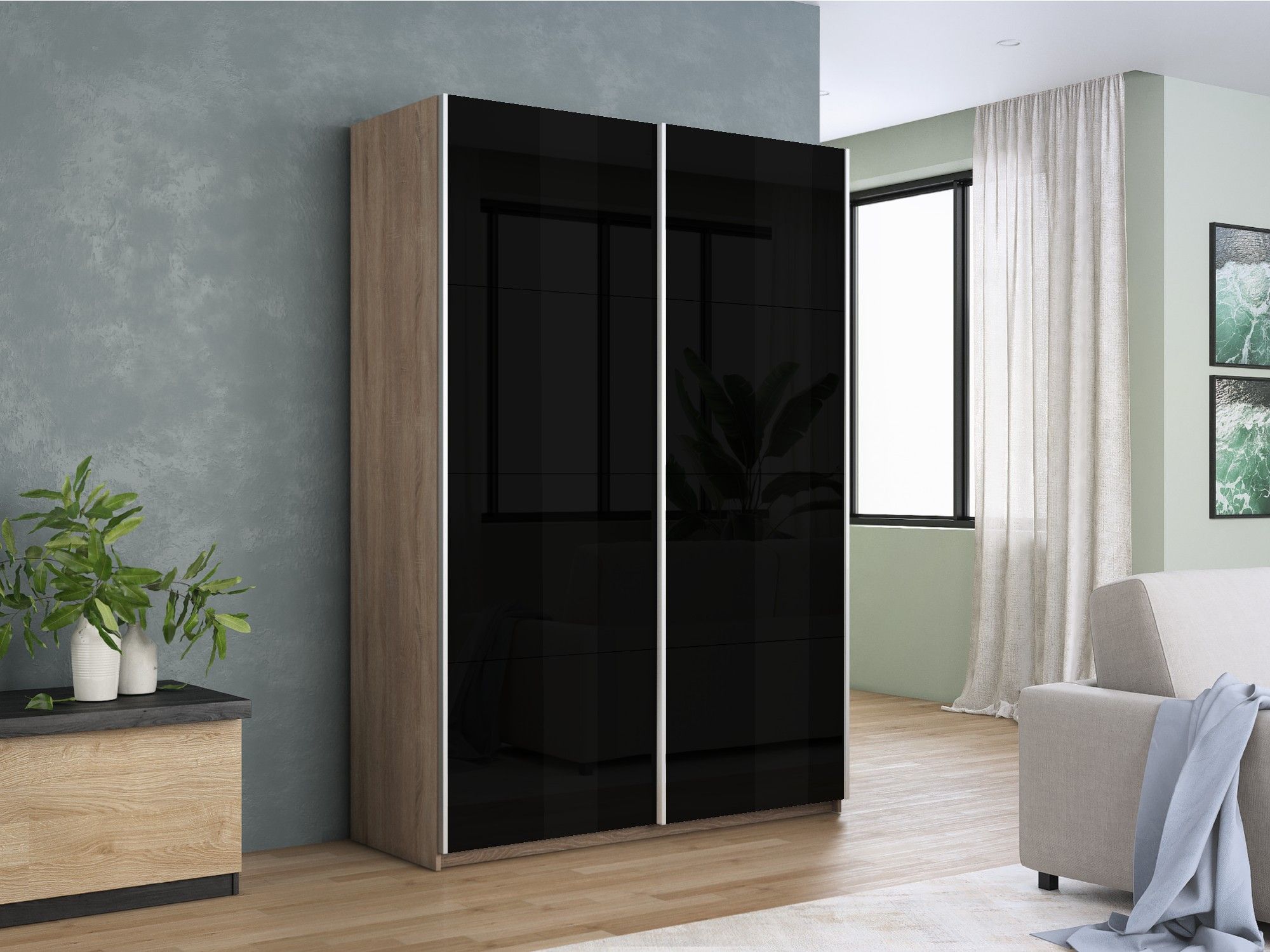 Отзывы о Столплит Шкаф-купе Прайм 2-х дверный Стекла черные/Доводчики 140х57х230 Дуб сонома
