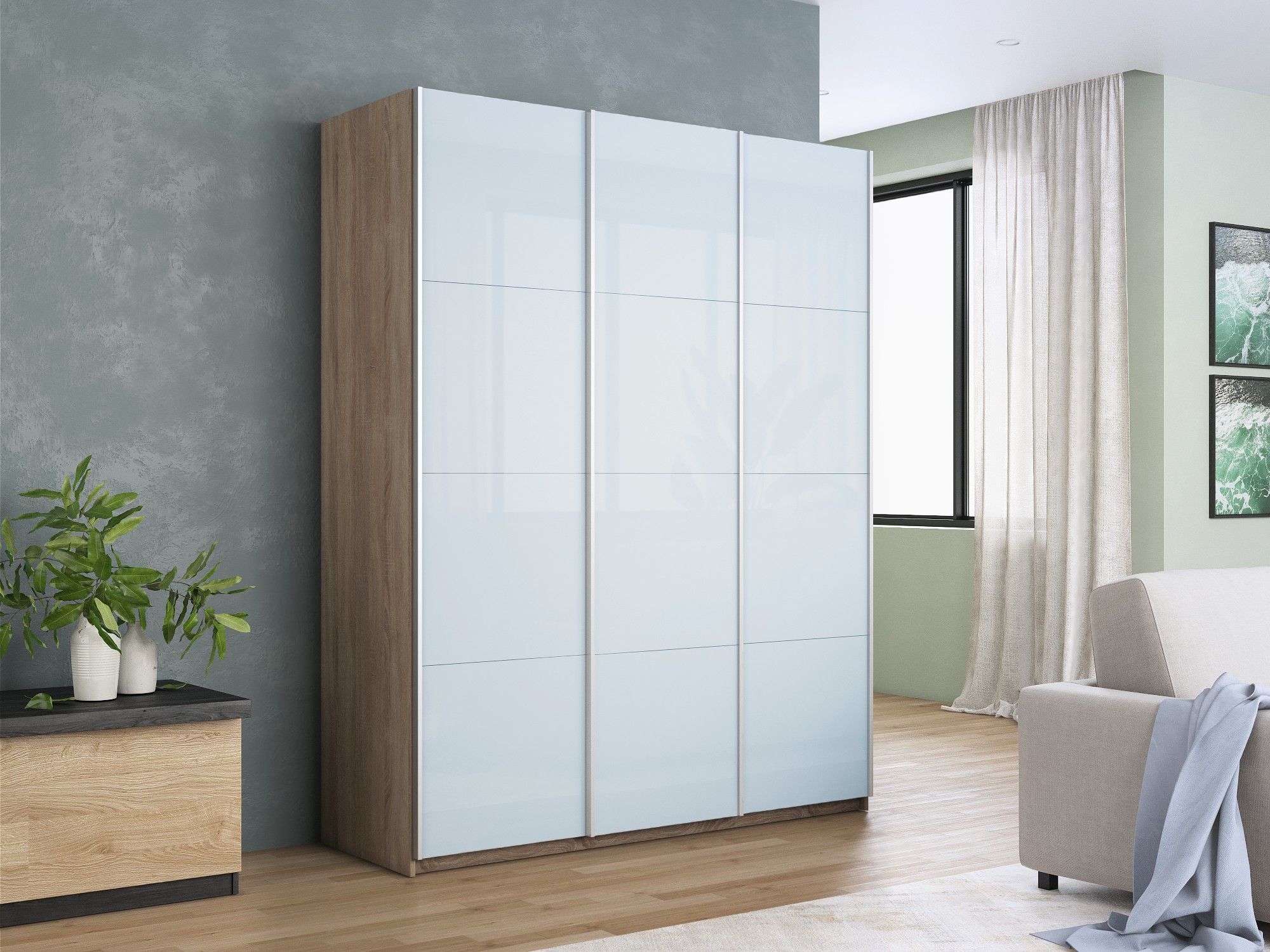 Отзывы о Столплит Шкаф-купе Прайм 3-х дверный Стекла белые/Доводчики 180х57х230 Дуб сонома