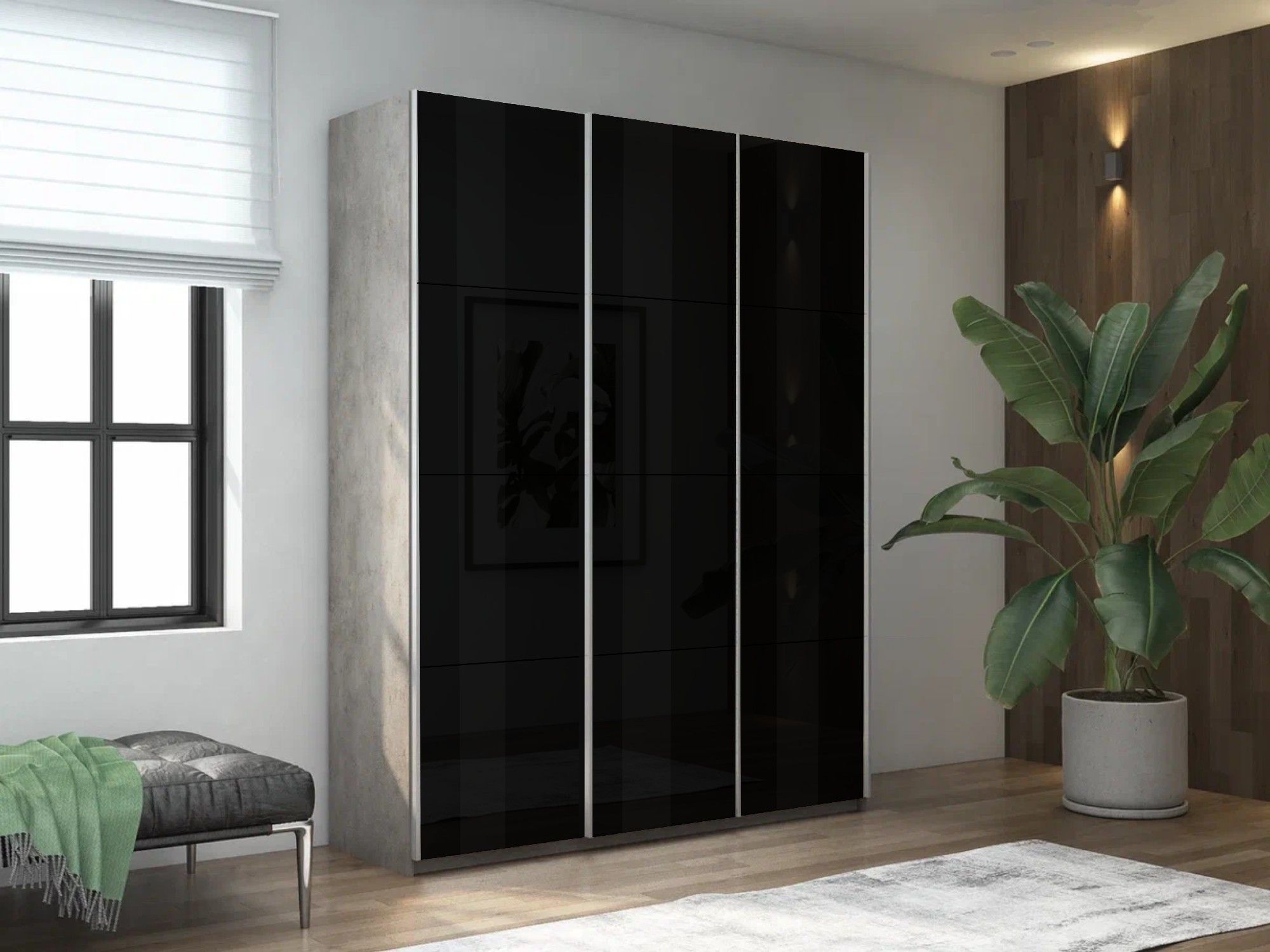 Отзывы о Столплит Шкаф-купе Прайм 3-х дверный Стекла черные/Доводчики 180х57х230 бетон