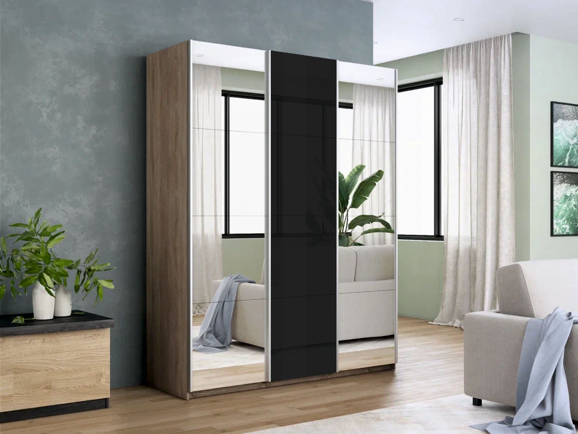 Отзывы о Столплит Шкаф-купе Прайм 3-х дверный Зеркала/Стекло черное/Доводчики 210х57х230 Дуб сонома