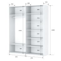 ВНИМАНИЕ! Минимальные размеры помещения для сборки и установки шкафа-купе серии "Прайм": +20 см по высоте, +5 см по ширине. Серия «Прайм» – это шкафы-купе для одежды с эстетичным и изысканным внешним видом, который достигается благодаря применению навесной системы крепления дверей-купе Hettich Top Line M со скрытым верхним ходовым профилем, данная система обеспечивает плавный ход фасадов. Каждая дверь поделена на 4 секции, которые можно устанавливать в произвольном порядке, создавая каждый раз новый дизайн фасада. Идеально подойдет не только к вашему спальному гарнитуру, прихожей и детской, но и будет гармонично сочетаться со всеми элементами мебели. Не займет много места, но позволит вместить большое количество вещей. Внутреннее наполнение шкафа позволяет вместить не только верхнюю одежду и обувь, но и аксессуары. А удобное разделение секций поможет грамотно разместить все вещи в шкафу. В шкафу-купе «Прайм» используется высококачественная фурнитура немецкого концерна Hettich, это обеспечит вам комфортное и долгое использование гардероба. В производстве используется безопасное ЛДСП международного класса Е1, что способствует безопасному использованию на протяжении всего срока эксплуатации. Поэтому вы можете использовать его в детской комнате, и ваш ребенок будет в безопасности. Доступна услуга сборки. Все подробности по тарифам и срокам уточнять у продавца. *Внутреннее наполнение стандартное, расположение полки/штанга менять местами не предусмотрено. Доводчики на закрывание входят в комплект. **Изображения товара могут отличаться по цвету и фактуре от фактического внешнего вида. Глубина шкафа по боковой стоевой с учетом дверей 570 мм, полезная глубина (глубина полок) 500 мм