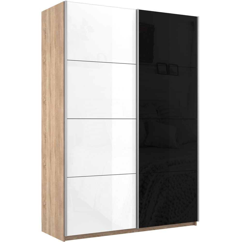 Отзывы о Столплит Шкаф-купе Прайм 2х дверный Белый Глянец/Стекло черное 140х57х230 Дуб Сонома