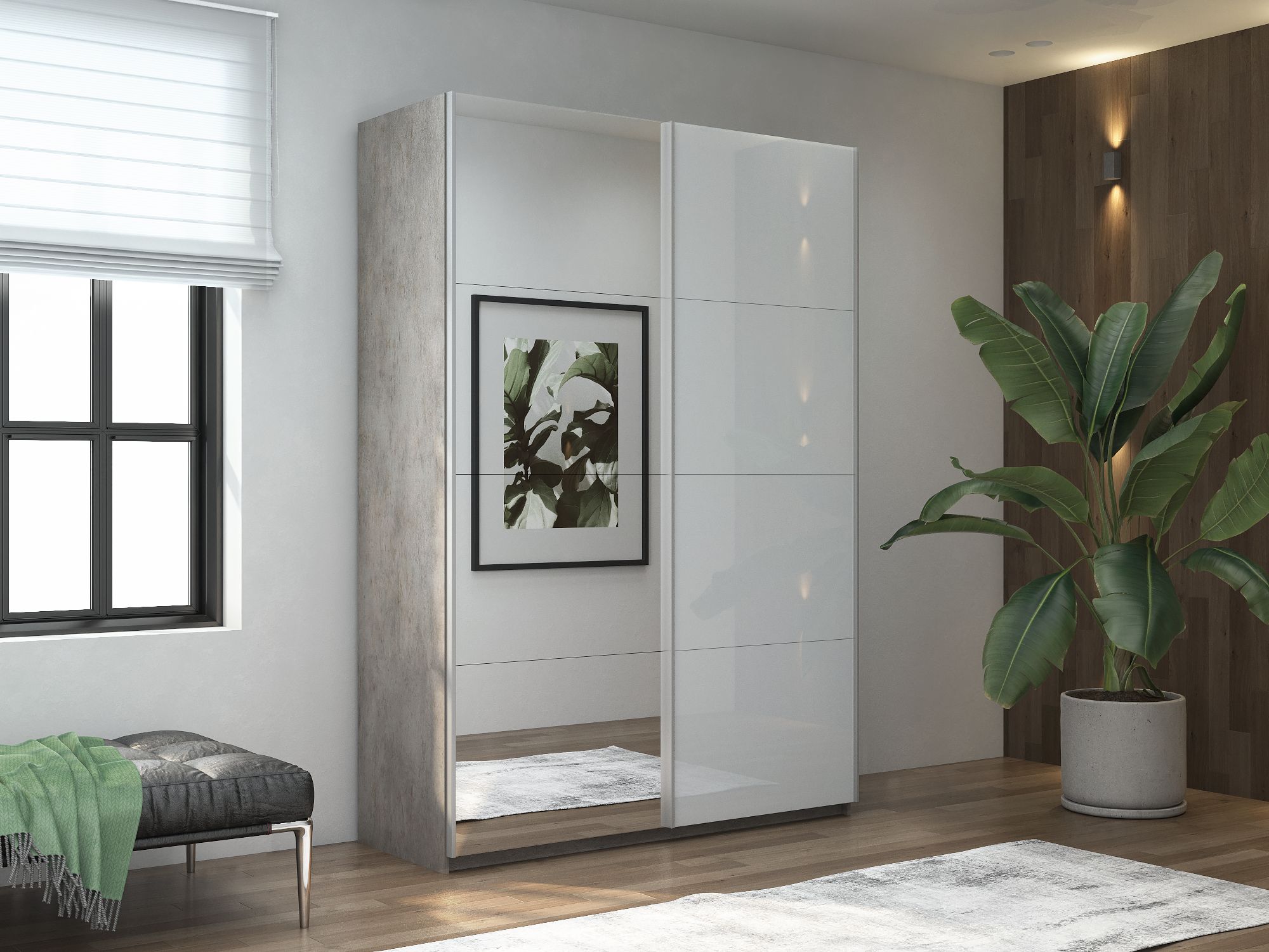 Отзывы о Столплит Шкаф-купе Прайм 2х дверный Зеркало/Белый Глянец 120х57х230 Бетон