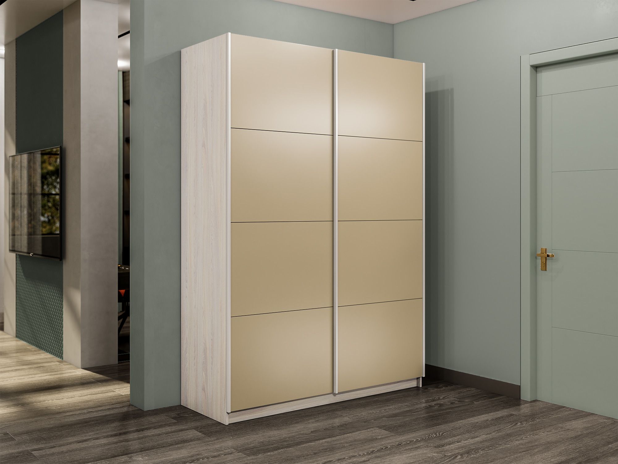 Отзывы о Столплит Шкаф-купе Прайм 2-х дверный Стекла фисташка/Доводчики 160х57х230 Ясень Анкор светлый