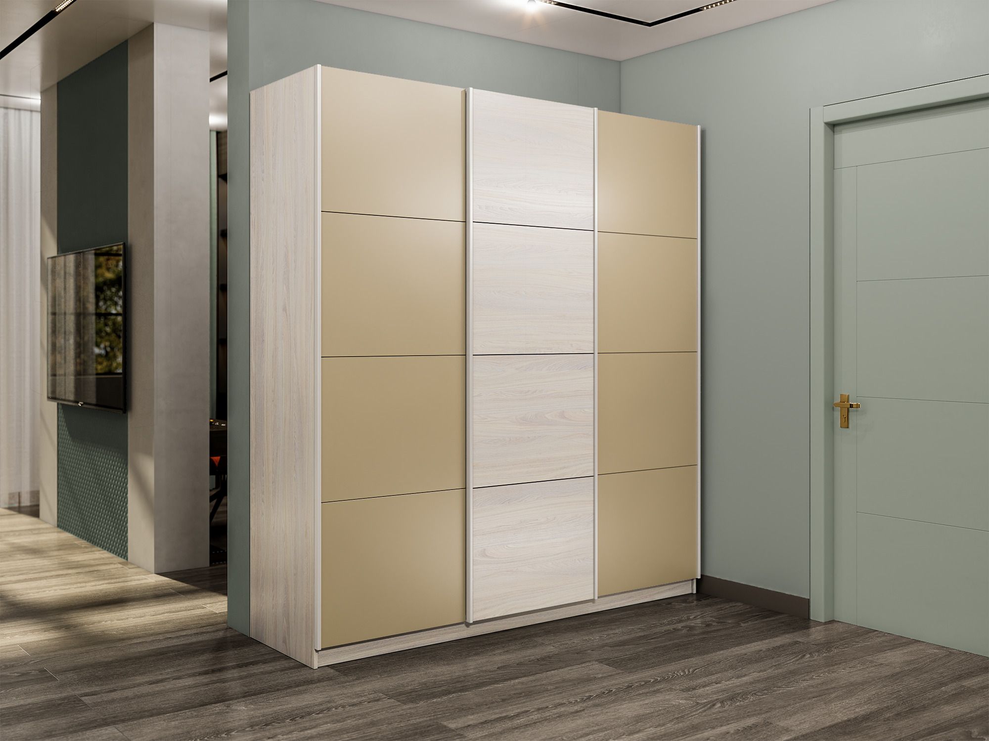 Отзывы о Столплит Шкаф-купе Прайм Широкий 3-х дверный Стекла фисташка/ДСП/Доводчики 240х57х230 Ясень Анкор светлый
